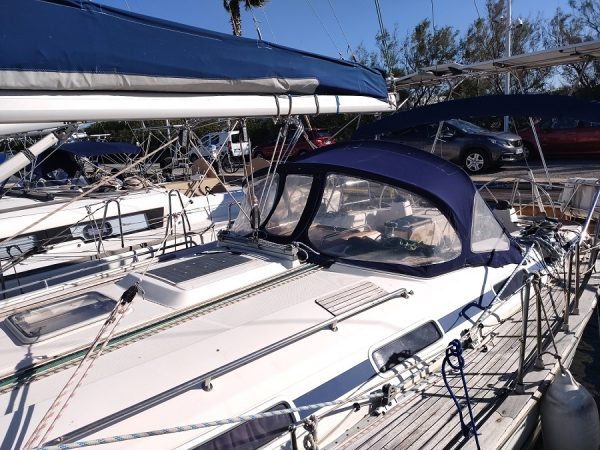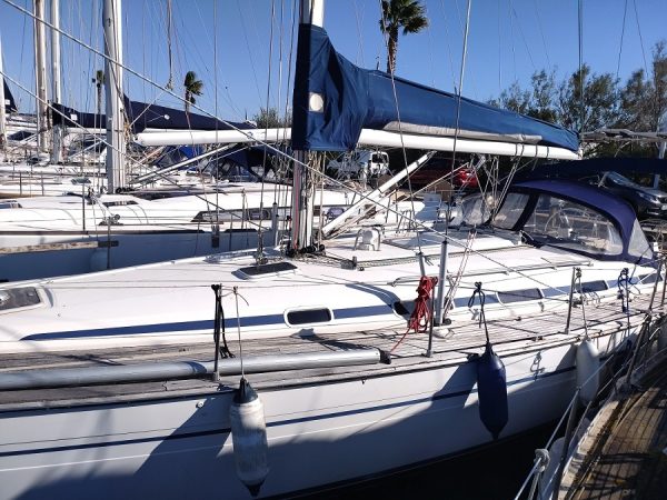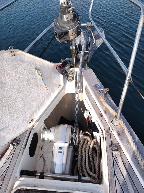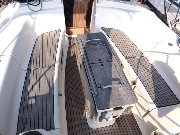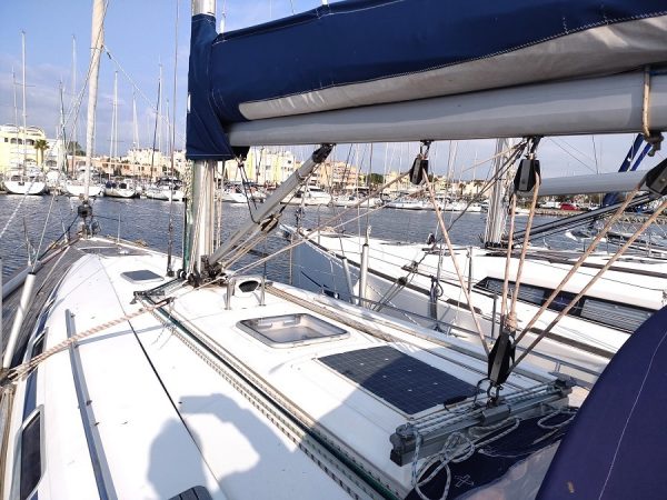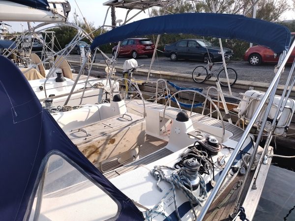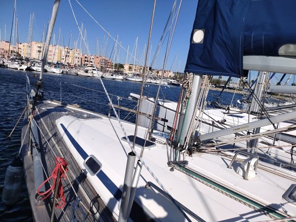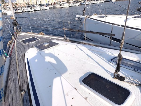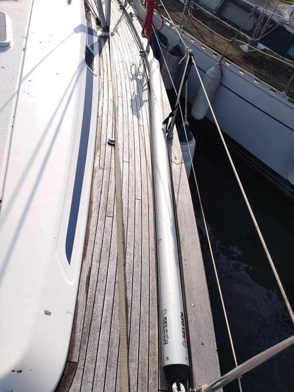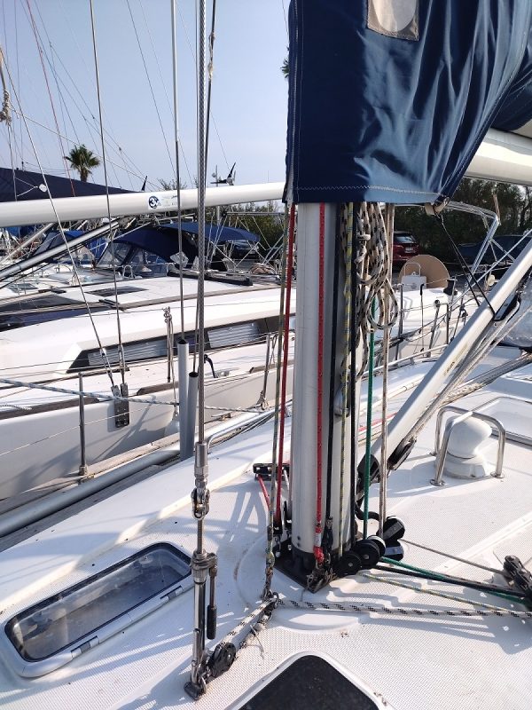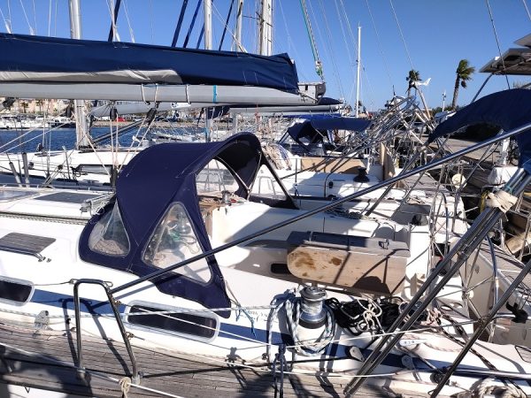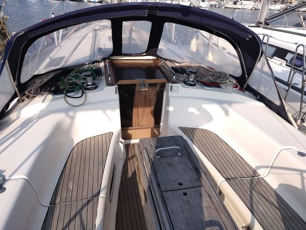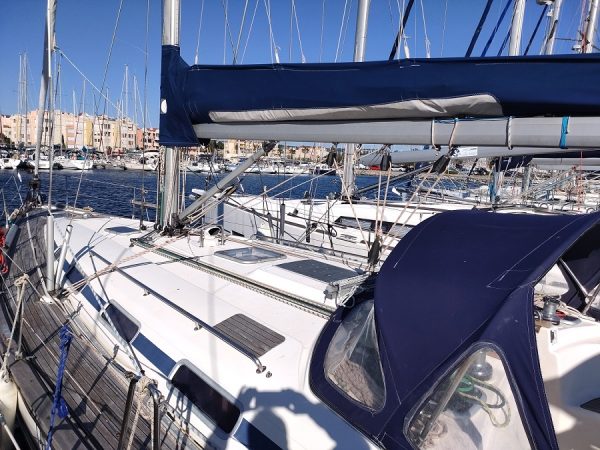 Voiles et Gréement : Grand Voile : Full-batten Génois : de 55 m² ( 2016 ) Enrouleur de génois : Furlex 300 S Spi asymétrique : oui (avec accastillage) Etai Largable : oui Tourmentin : oui Lazy Bag et Easy Jack : 2014 Winchs Self-Tailings : 2 x st 48 Harken r + 2 x st 40 Harken + 1 x st 30 Harken Tangon : oui Bout dehors : oui Taud de soleil : oui Capote de descente : oui Bimini : 2017 Hale-bas Rigide : oui