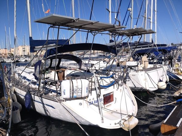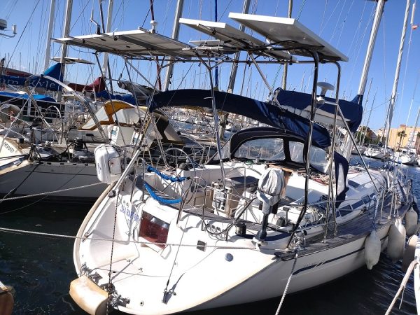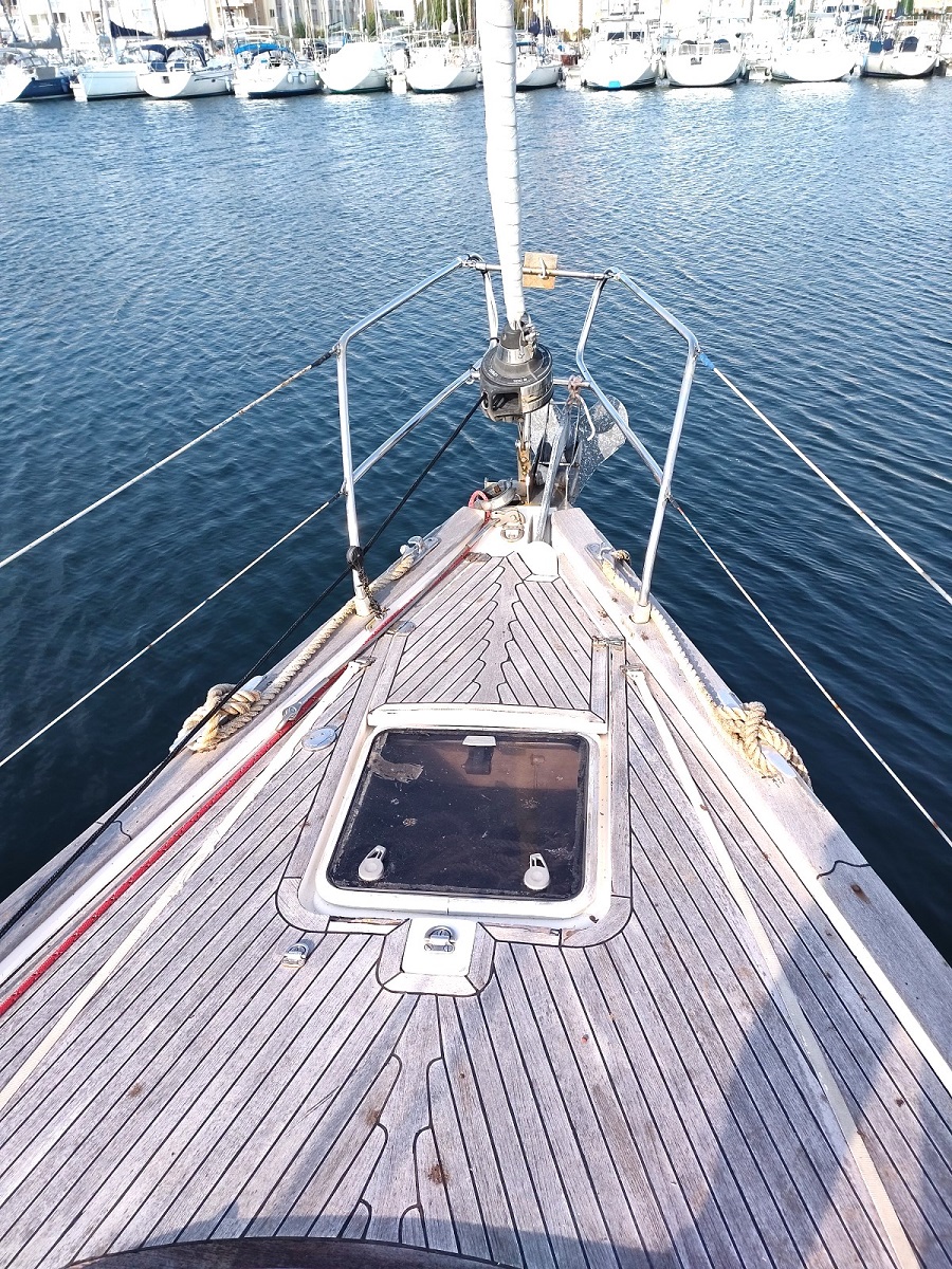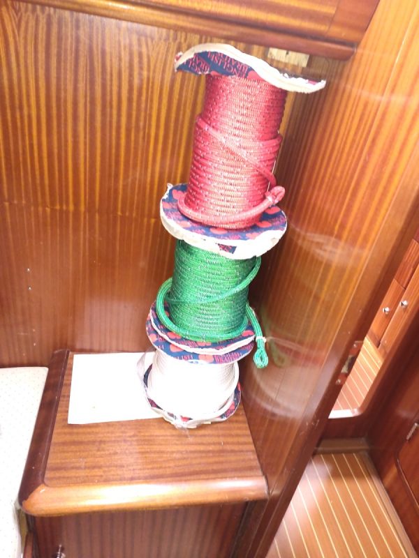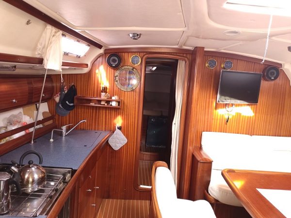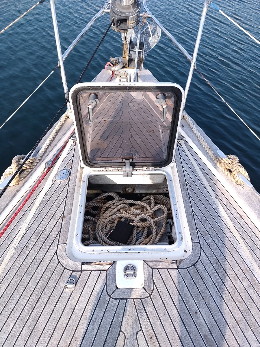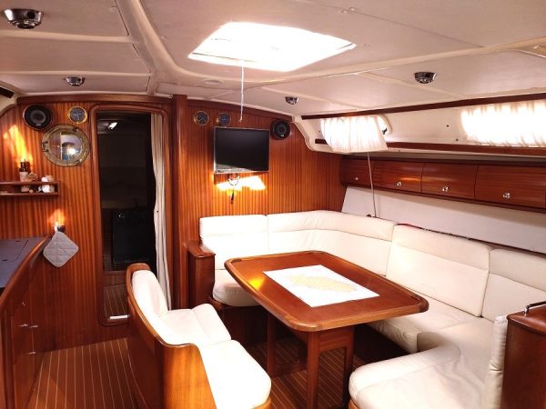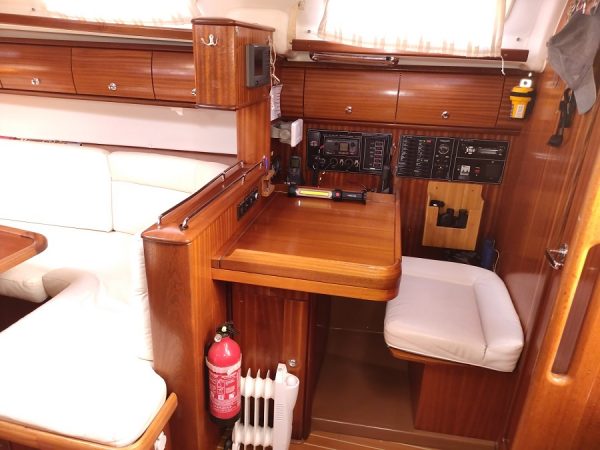 Voiles et Gréement : Grand Voile : Full-batten Génois : de 55 m² ( 2016 ) Enrouleur de génois : Furlex 300 S Spi asymétrique : oui (avec accastillage) Etai Largable : oui Tourmentin : oui Lazy Bag et Easy Jack : 2014 Winchs Self-Tailings : 2 x st 48 Harken r + 2 x st 40 Harken + 1 x st 30 Harken Tangon : oui Bout dehors : oui Taud de soleil : oui Capote de descente : oui Bimini : 2017 Hale-bas Rigide : oui