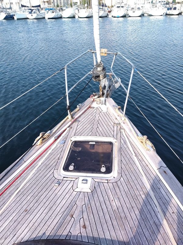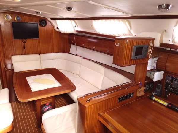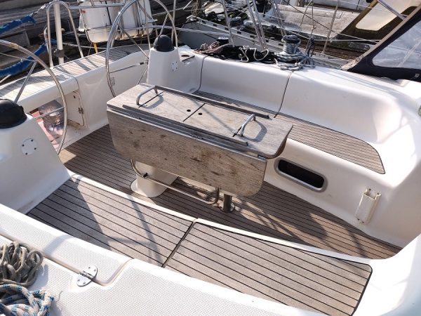 Version : 1 cabine avant double – 1 cabine avant simple – 2 cabines arrière double – 2 Salle de bains- Pont teck – Cockpit Teck et Fond de cockpit Teck –