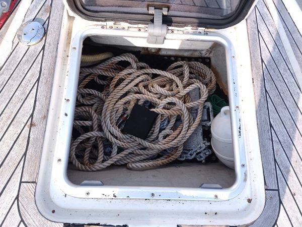 Divers : Table de cockpit : oui Echelle de bain : oui Jupe arrière : oui Guindeau Electrique : 1200 w. avec télécommande Mouillages : 1 x 15 kg. Delta et 50 m. chaîne diamètre 08 (2014) + 1 ancre supplémentaire avec orin Annexe : oui Moteur Hors-bord : oui Support moteur HB : oui Passerelle : oui
