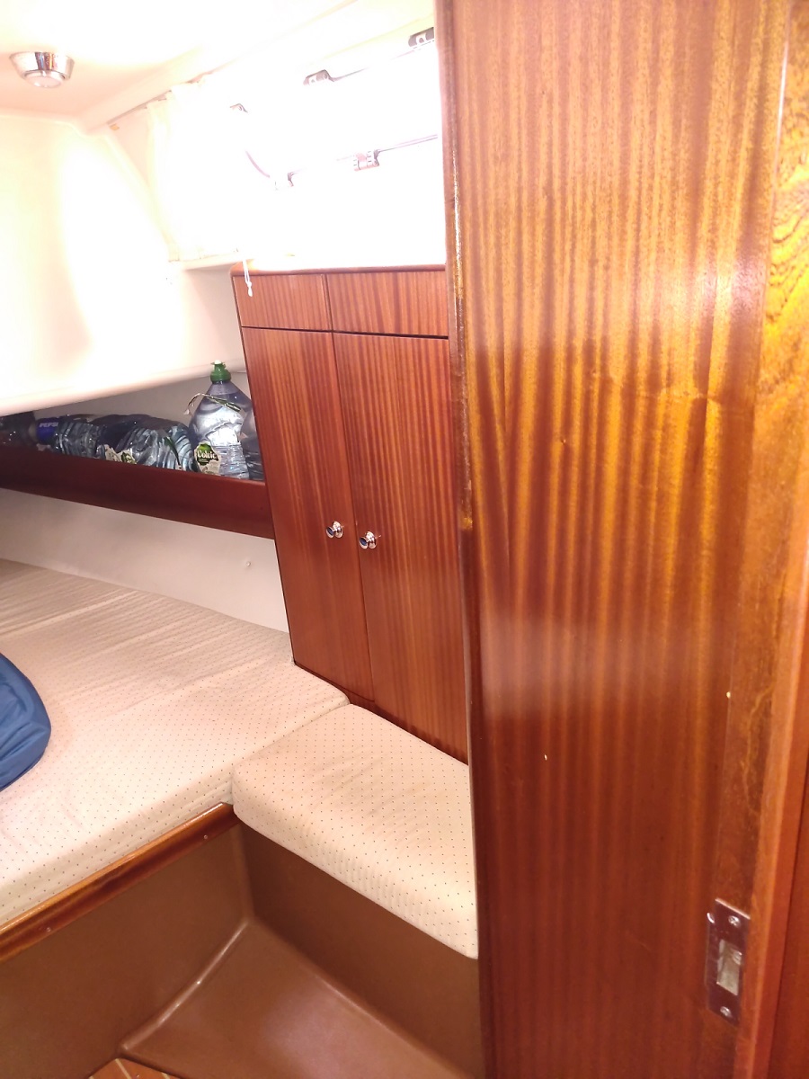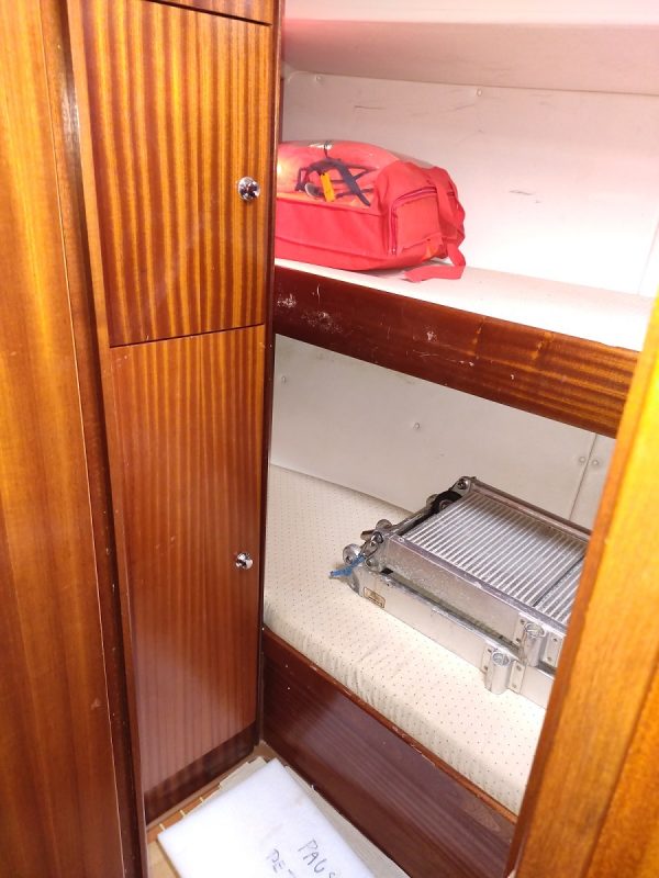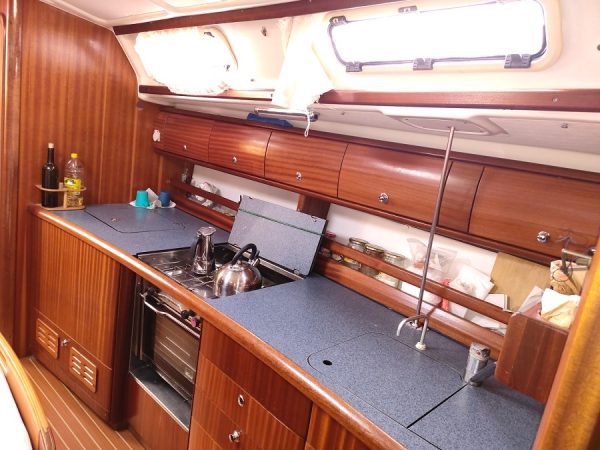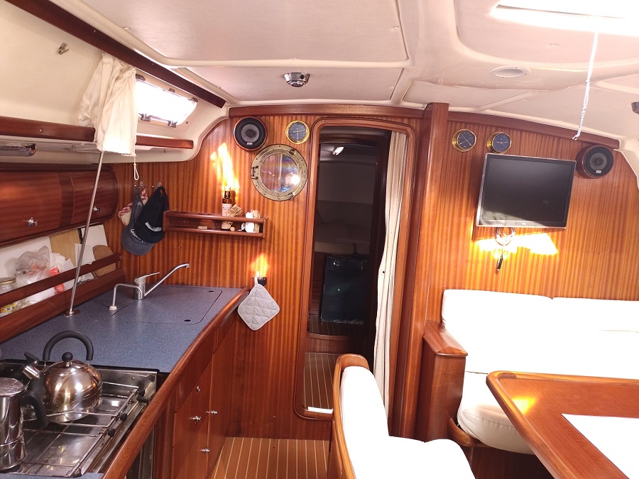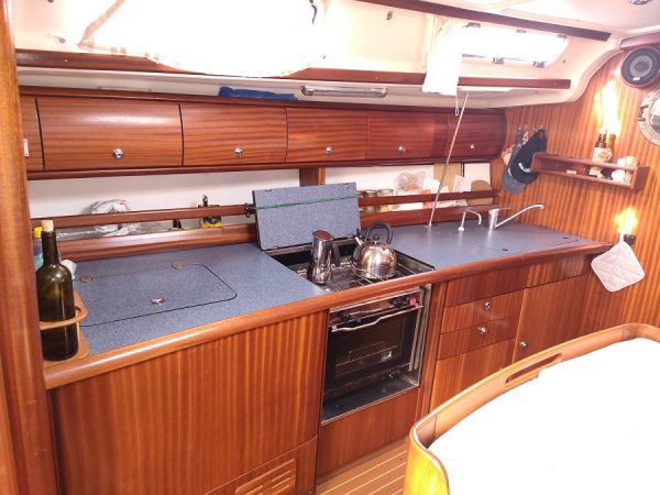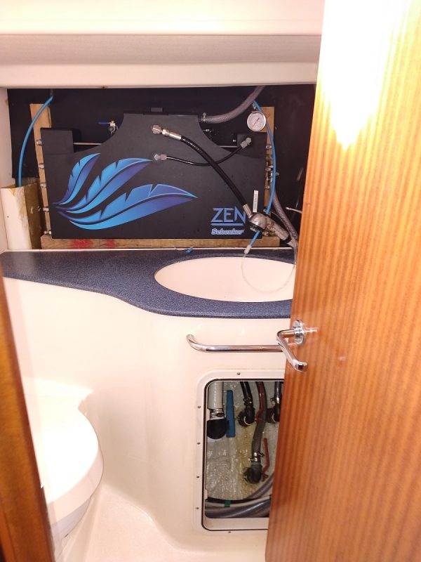 Vie à bord : Cuisine : oui Four : oui Gazinière : 2 feux Frigo : x 2 Eau sous pression chaude et froide : oui ( chauffe-eau 2008 ) Salle de bain : x 2 WC : x 2 ( 1 wc électrique avant ) Réservoir eaux noires : 50 L. ( environ ) dans SDB avant Douche : x 2 Douche de cockpit : de 2017 Réservoir Eau : 1 x 210 L.+ 1 x 150 L.