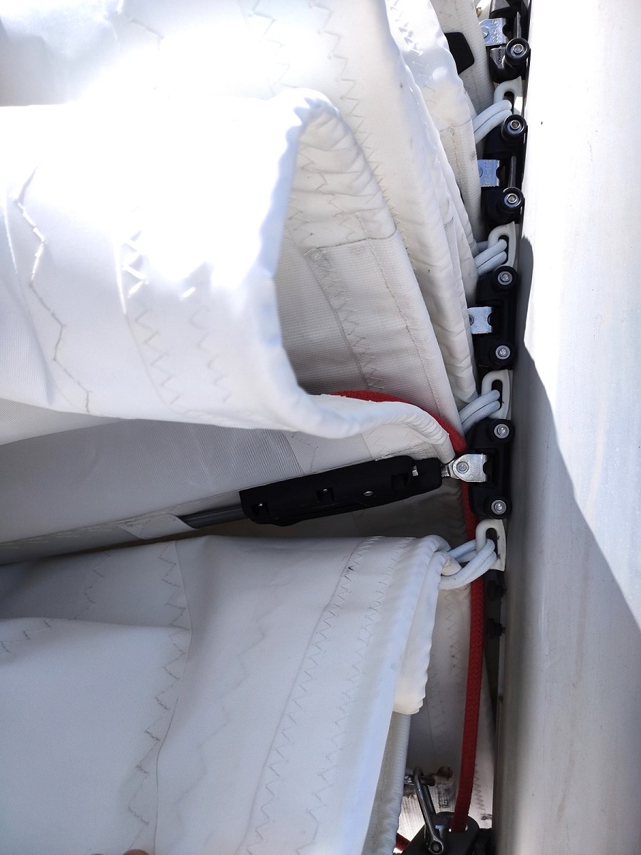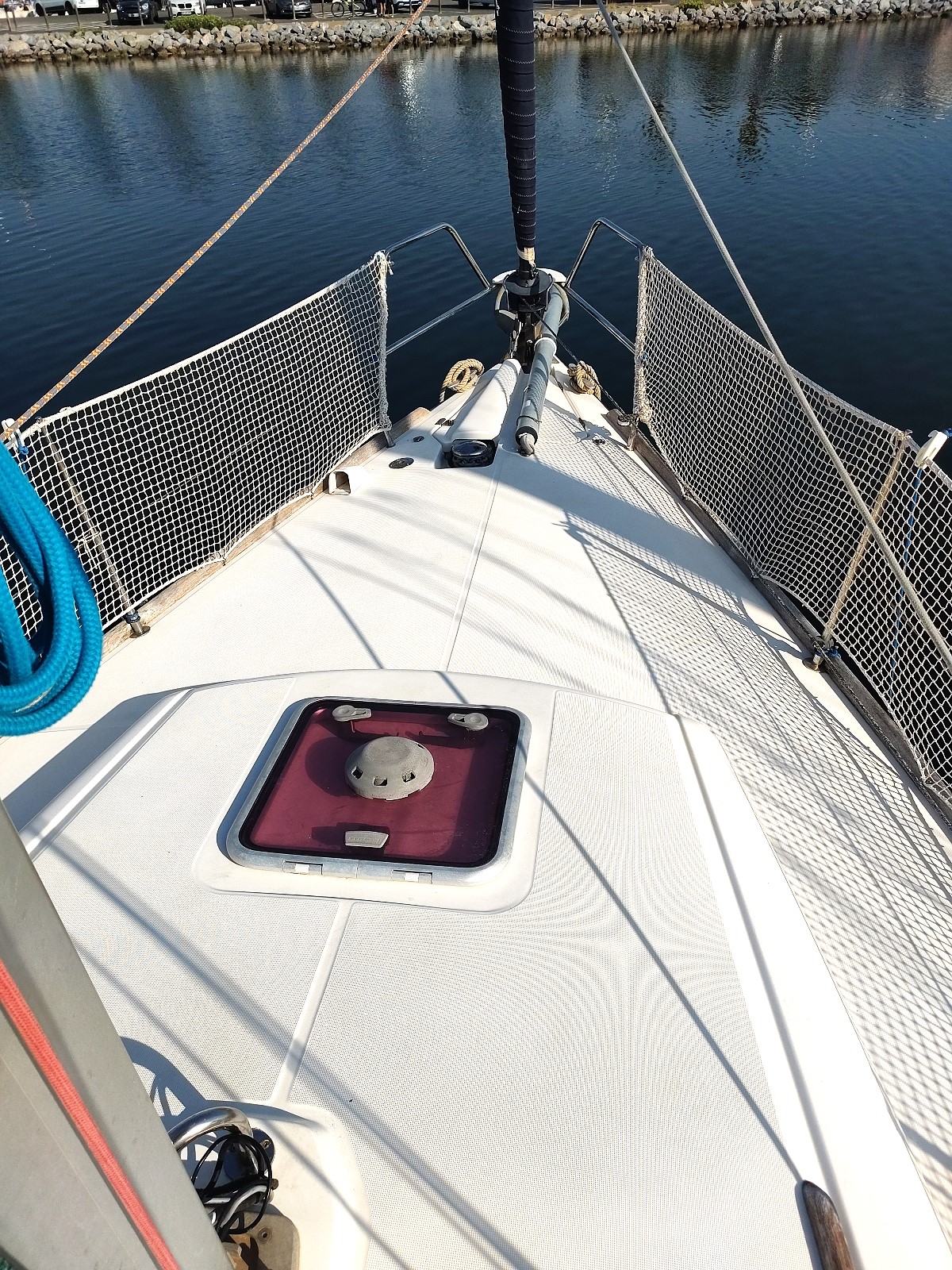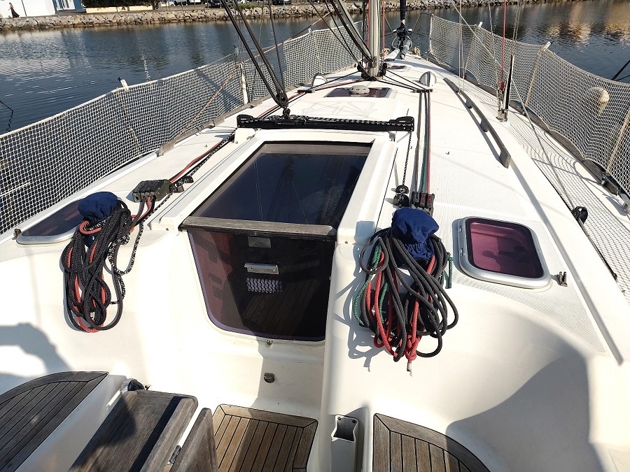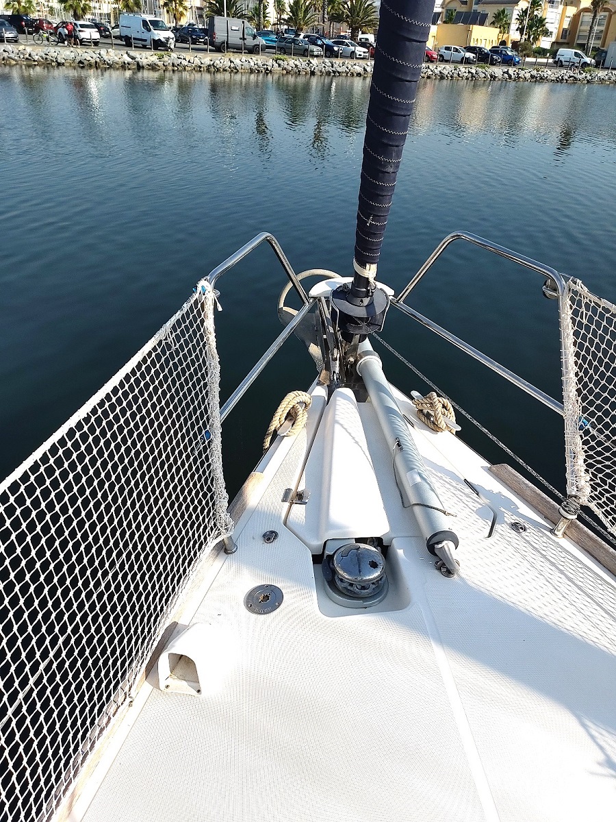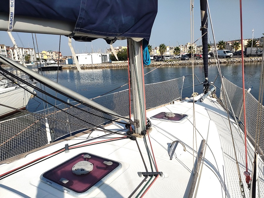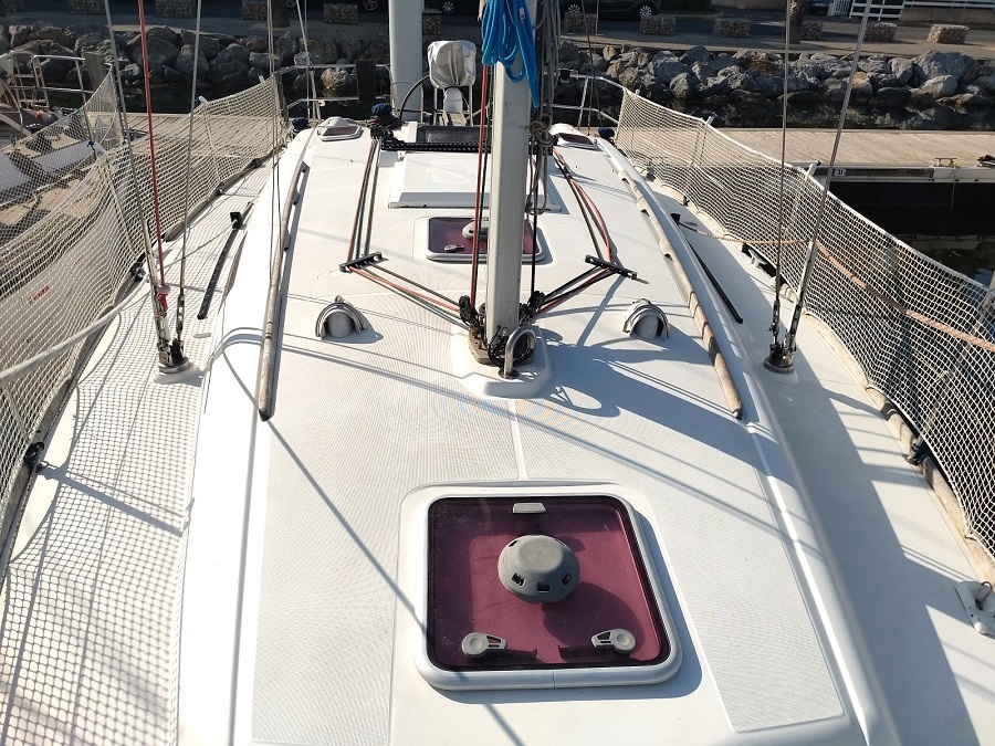 Voiles et Gréement : Grand Voile : Full-batten 32 m² sur roller avec 2 ris automatique (mars 2024) Génois : Triradial Flex Ultrape 31 m² de (2023) Gennaker avec chaussette : décembre 2024 Enrouleur de génois : Profurl Bout dehors : oui Winchs self-tailings : 4 x st 32 Lewmar Hale-bas rigide : oui Lazy bag :2022 Easy jack : 2025 Gréement Dormant : 2018
