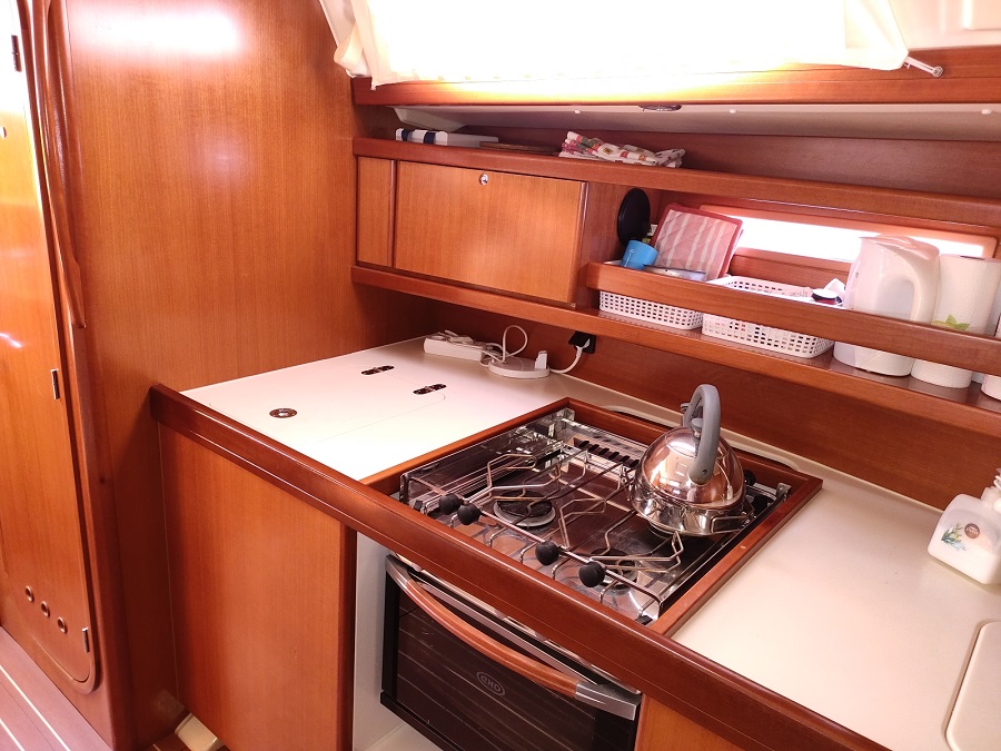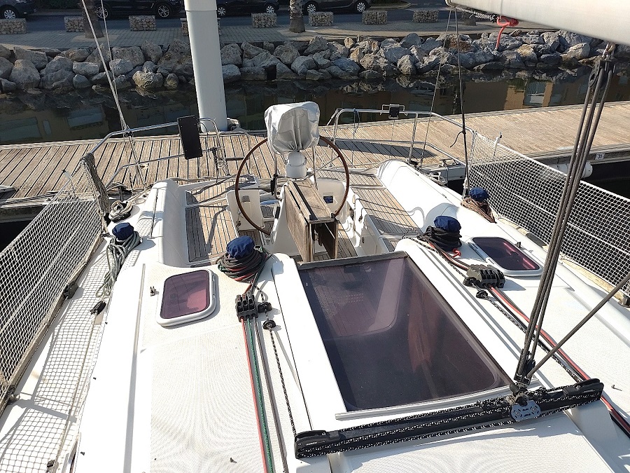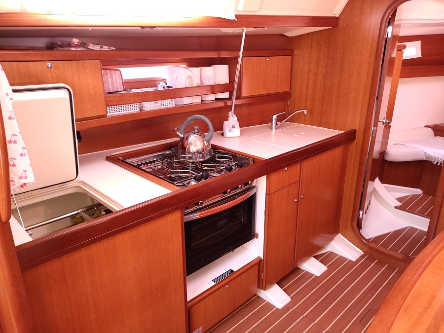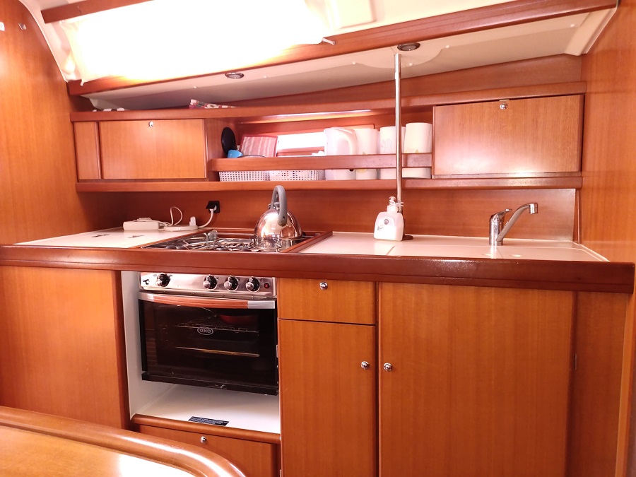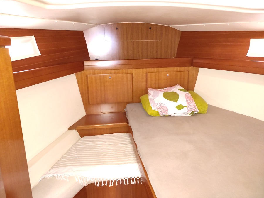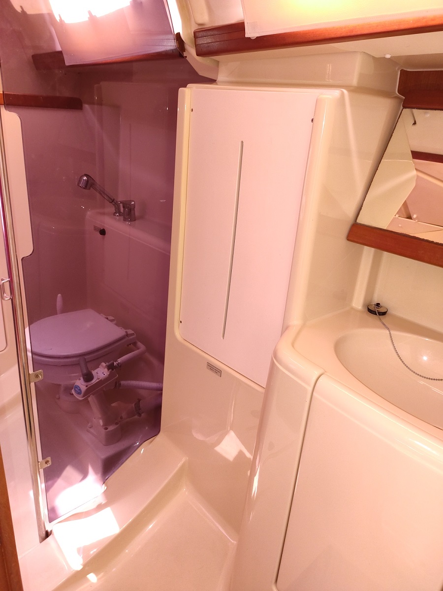 Vie à bord : Cuisine : oui Four : oui Gazinière : 3 feux Frigo : oui Eau sous pression chaud et froide : oui Salle de bain : oui WC : 1 Douche : 1 Douche de pont : oui Réservoirs Eau : 2 x 200 L. plastique Réservoir eaux noires : oui Chauffage : Webasto Vannes et passe-coques : 2022