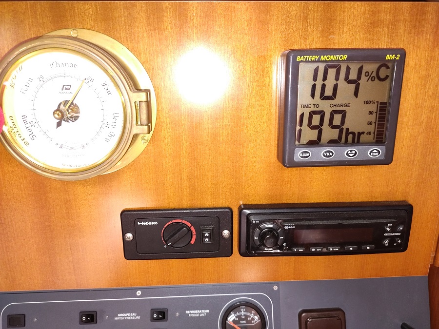 Electricité : Batterie Moteur : 1 x 12 v. 72 Ah. ( 2022) Batteries Service : 2 x 12 v. 108 Ah. (2024) Chargeur de batteries : 30 Ah.( juillet 2025 ) Circuit 220 v. + 12 v.: oui Gestionnaire de batteries : oui