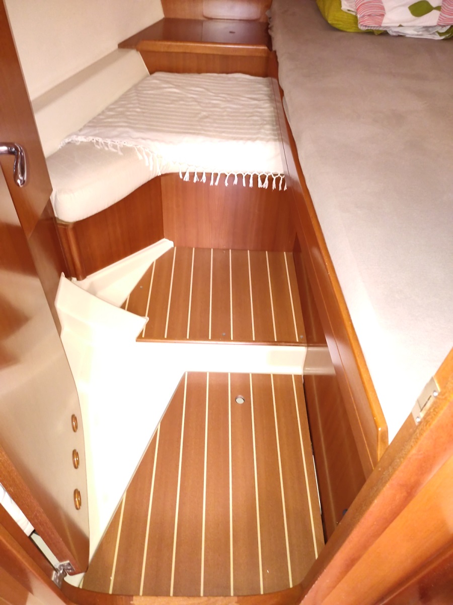 Version : 1 cabine avant double + 1 Salle de bains avec douche séparée – 1 cabine arrière double – Cockpit et fond de cockpit latté Teck –