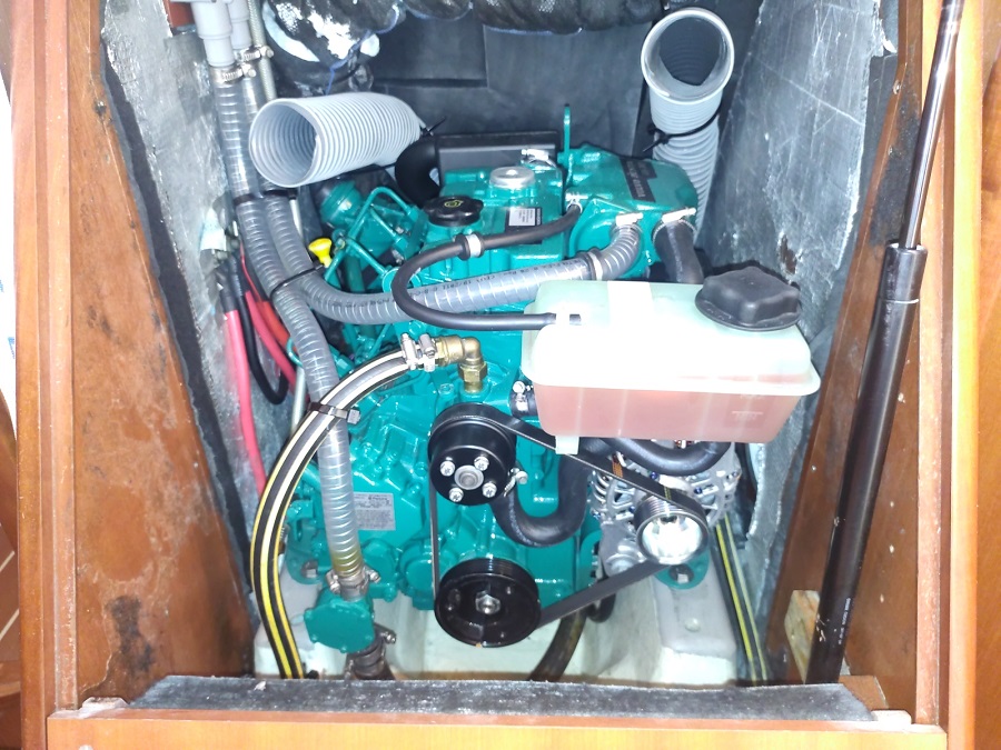 Moteur : VOLVO 29 cv – IB Diesel – Type moteur : D1-30 ( Neuf du 07 juillet 2025 ) Nombre d’heures : environ 2 H. Transmission : sail-drive ( joint sail-drive 07 juillet 2025) Type d’hélice : Bipale Coupe-orin : oui Réservoir Carburant : 1 x 90 L . plastique