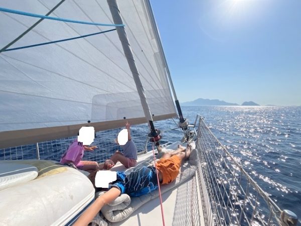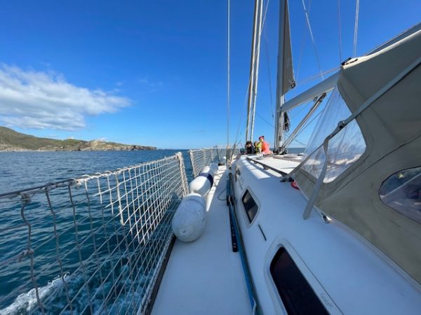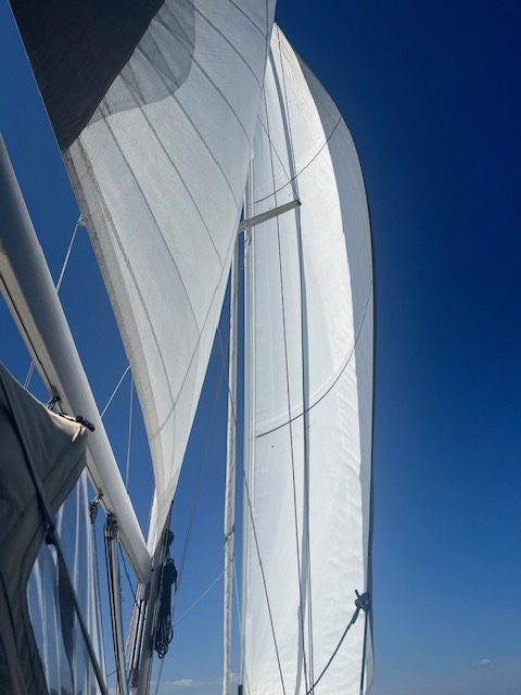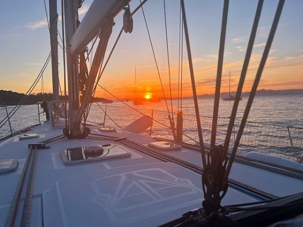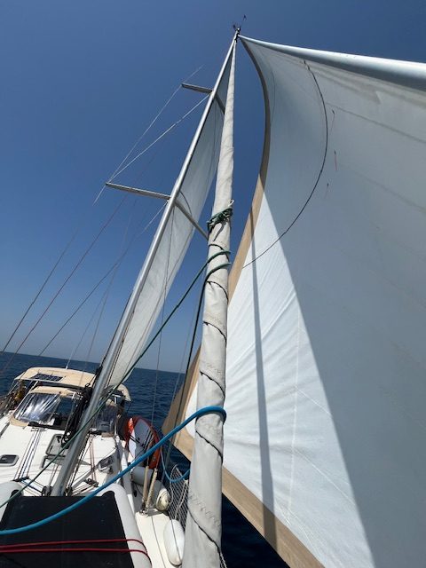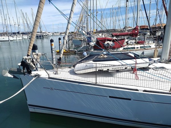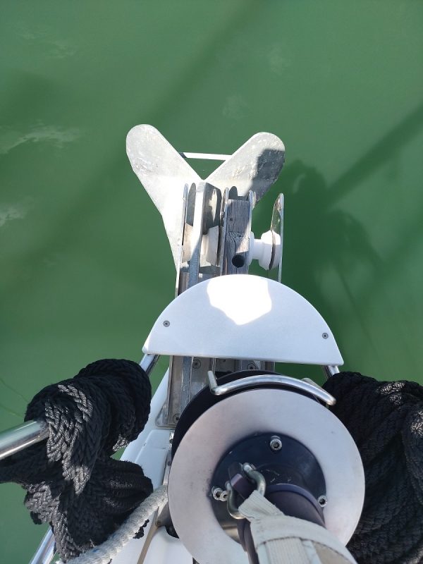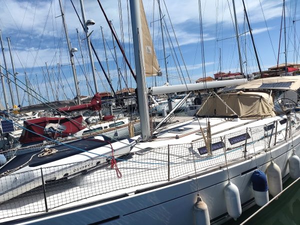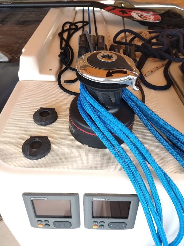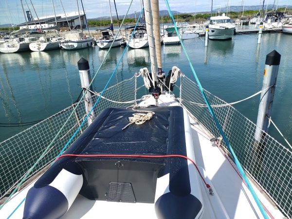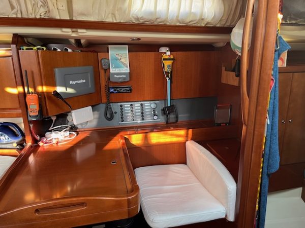 Voiles et Gréement : Grand Voile sur enrouleur : DCX Hydranet ( 2017 ) + 1 ancienne GV ( excellent état) Enrouler de GV : révisé en 2025  Génois : Triradial DCX hyranet ( 2017 ) Enrouleur de Génois : Facnor LS 800 Enrouleur de trinquette : 2021 Trinquette : 2021 Winchs Self-Tailings : 2 x st 4 8 Harken + 1 x st 40 Harken  Winch Electrique : 1 x st 40 Harken Capote de descente : oui Bimini :  x 2 Hale-bas rigide : oui Ecoute de GV + Bosse enrouleur : 2025