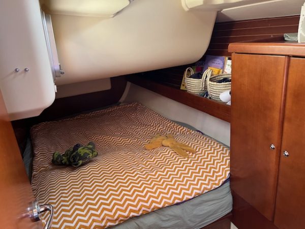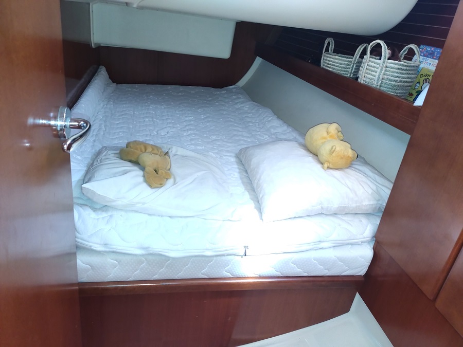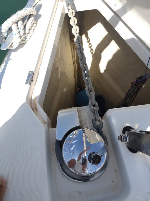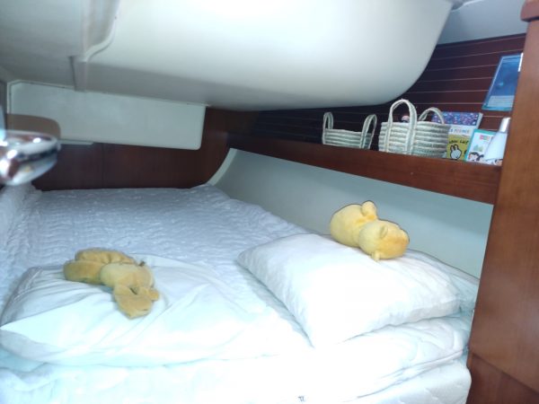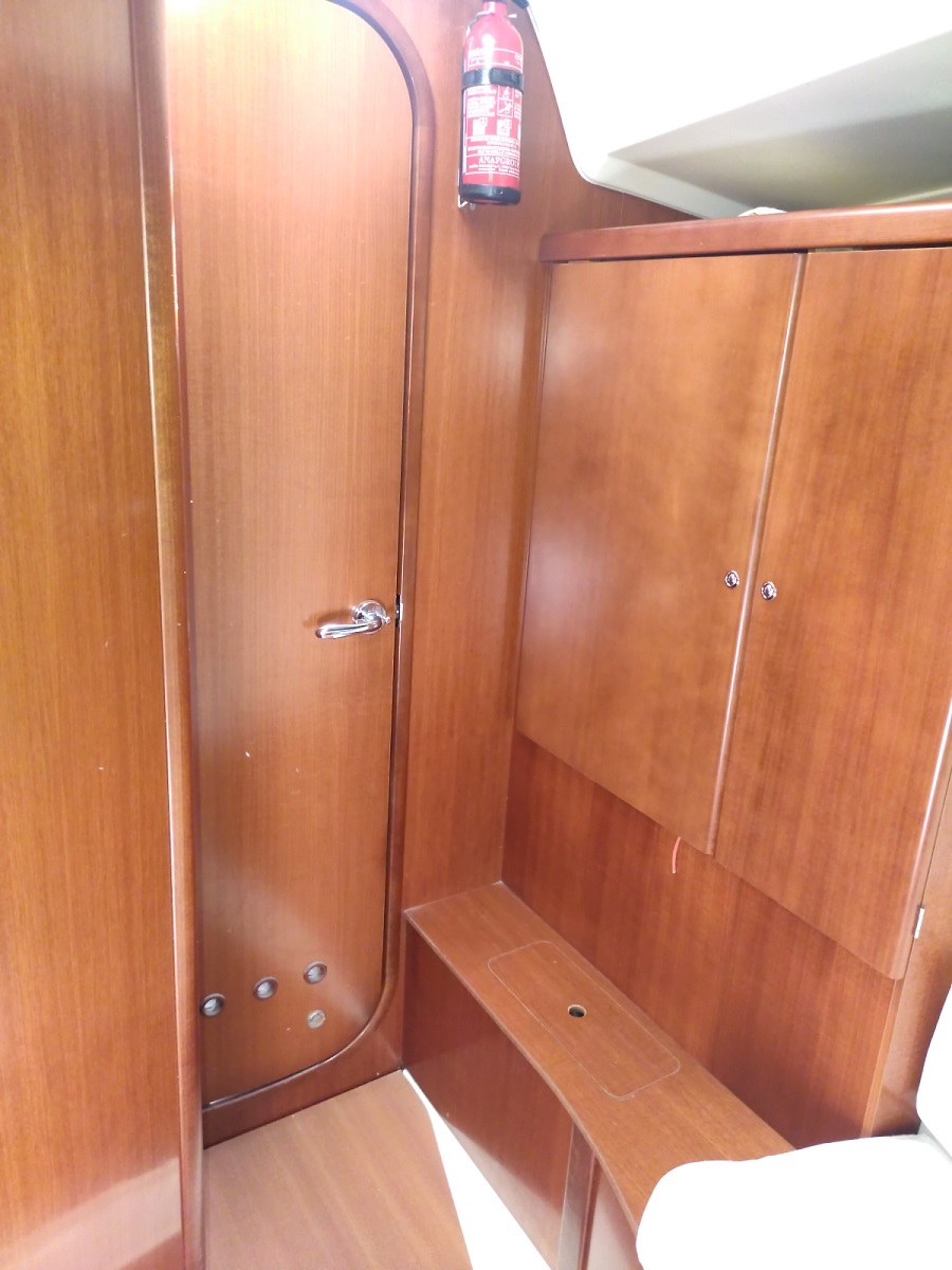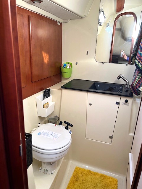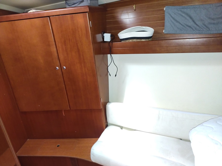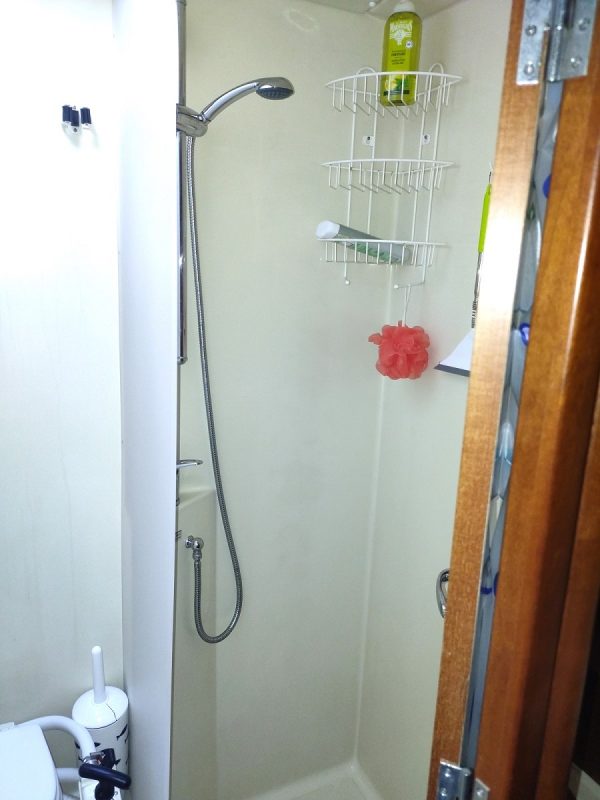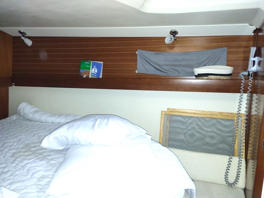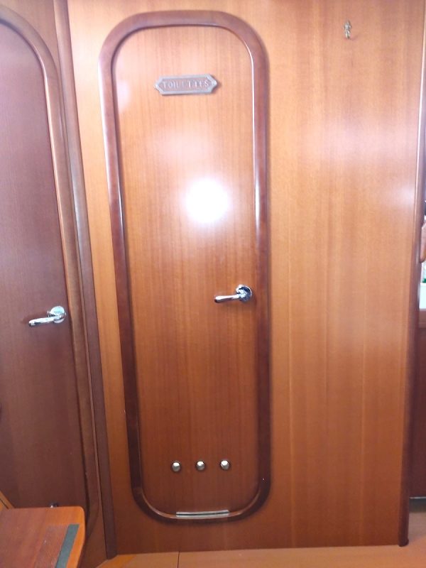 Vie à bord : Cuisine : oui Gazinière : 3 feux Four : oui Frigo : Grande capacité Eau sous pression : Chaude et froide WC : 2 classique ( vannes et passe-coques wc arrière 2022) Douche : 2 + douche de pont chaude et froide Réservoir Eau : 1 x 210 L. plastique Réservoir eaux noires : x1 Pompe à pied  eau de mer : oui Branchement eau à quai direct : 2025