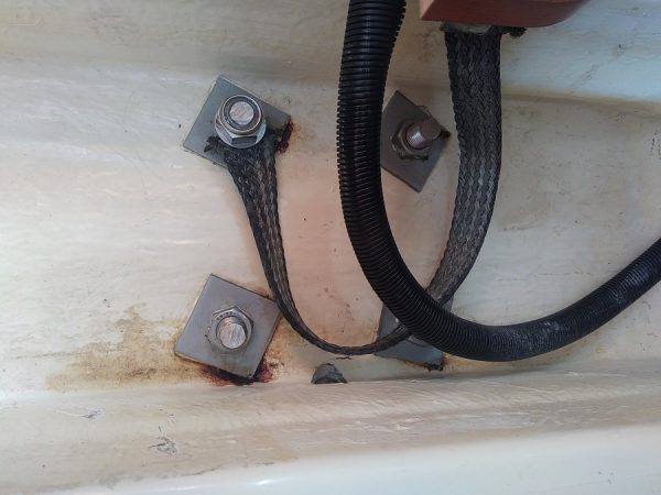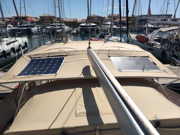 Electricité : Batterie Moteur : 1 x 12 v.100 Ah.( 2021 ) Batterie Service : 3 x 12 v.108 Ah. (2021 ) Chargeur de batteries : Cristec 40 Ah. Circuit 220 v. et 12 v.: avec prises 220 v. Panneaux solaires : 1 x 100 w. + 1 x 100 w. (2024) Feux de mouillages : 2025