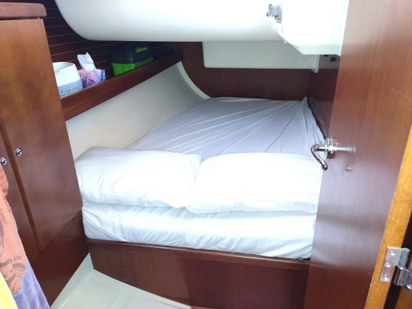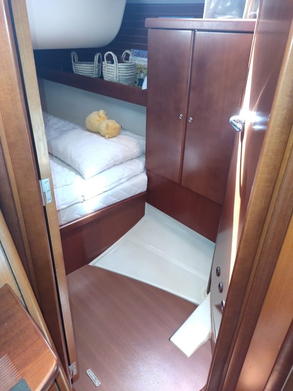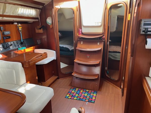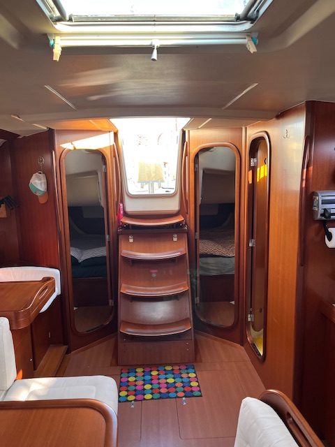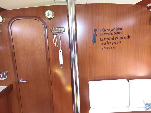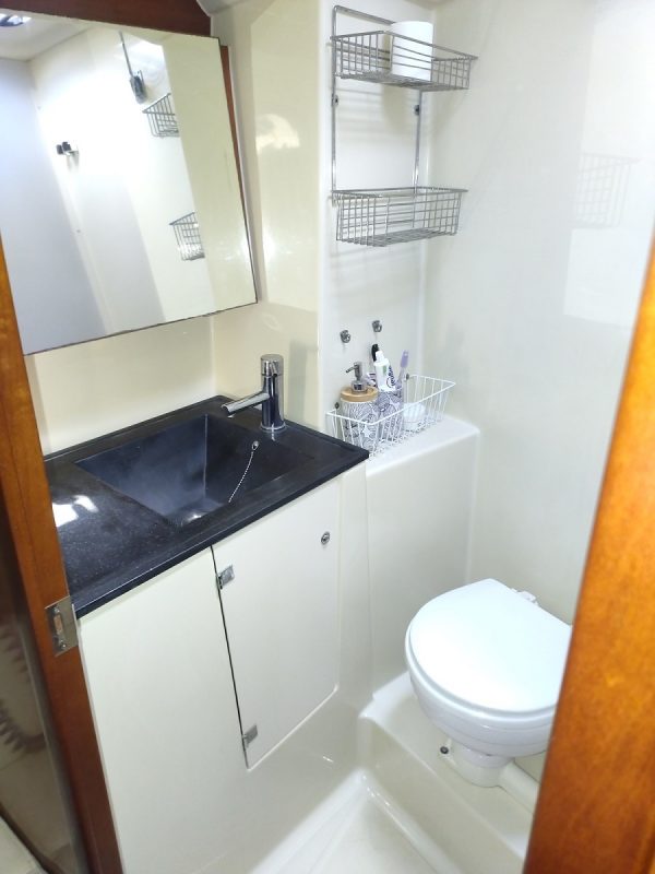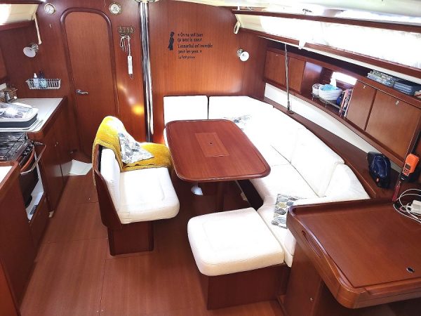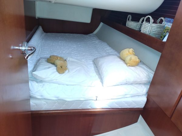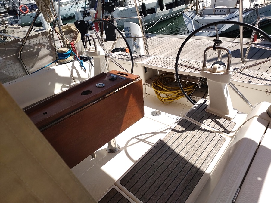 Version :  Banc de cockpit teck – Pont Teck – 1 cabine avant double et 1 salle de bains avec douche séparée – 2 cabines arriére double et  1 salle de bains avec accés cabine arrière bâbord –