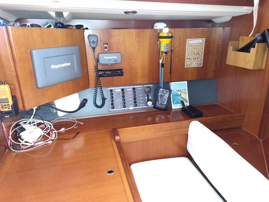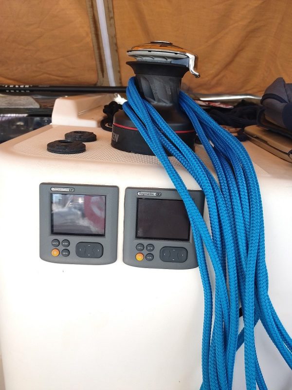 Electronique : Loch : oui Speedo : St 60 Raymarine Sondeur : oui Anémomètre : oui Girouette : oui VHF : Raymarine + VHF portable Uship Antenne VHF : 2025 Pilote Auto. : Raymarine st 70  GPS : oui Lecteur de cartes : Raymarine C 90 AIS : Emission et réception