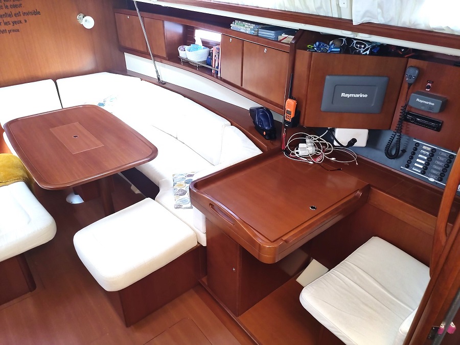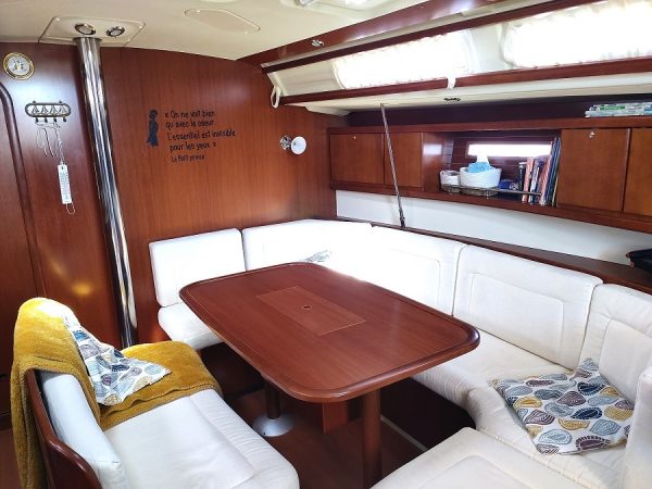 Divers : Table de cockpit : oui Echelle de bain : oui Jupe arrière : oui Guindeau Electrique : oui Mouillages : 1 x 20 kg. et 50 m. chaîne ( environ ) +  cablôt Annexe :  DBI 2m70 ( 2016)  Moteur Hors-bord : Yamaha 2,5 cv ( 2010) Housse de table de cockpit : oui Housses de barre à roue : x 2