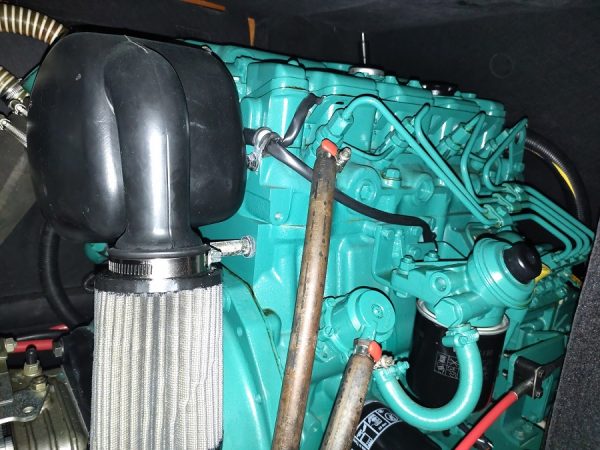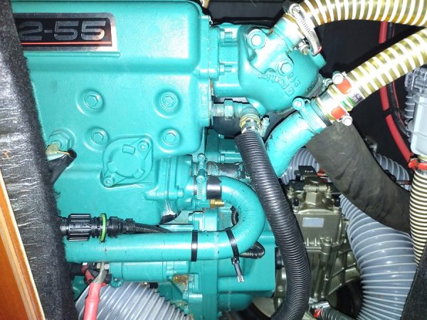 Moteur : Volvo 55 cv IB Diesel Type moteur : D2-55 ( Coude d’ Echapement révisé en 2020. Câble commande moteur 2020. Echangeur révisé en 2023. Entretien annuel mars 2025 ) Nombre d’heures : env. 924 H. Transmission : sail-drive ( joint sail-drive 2020) Type d’hélice : tripale Réservoir Carburant : 1 x 200 L. plastique