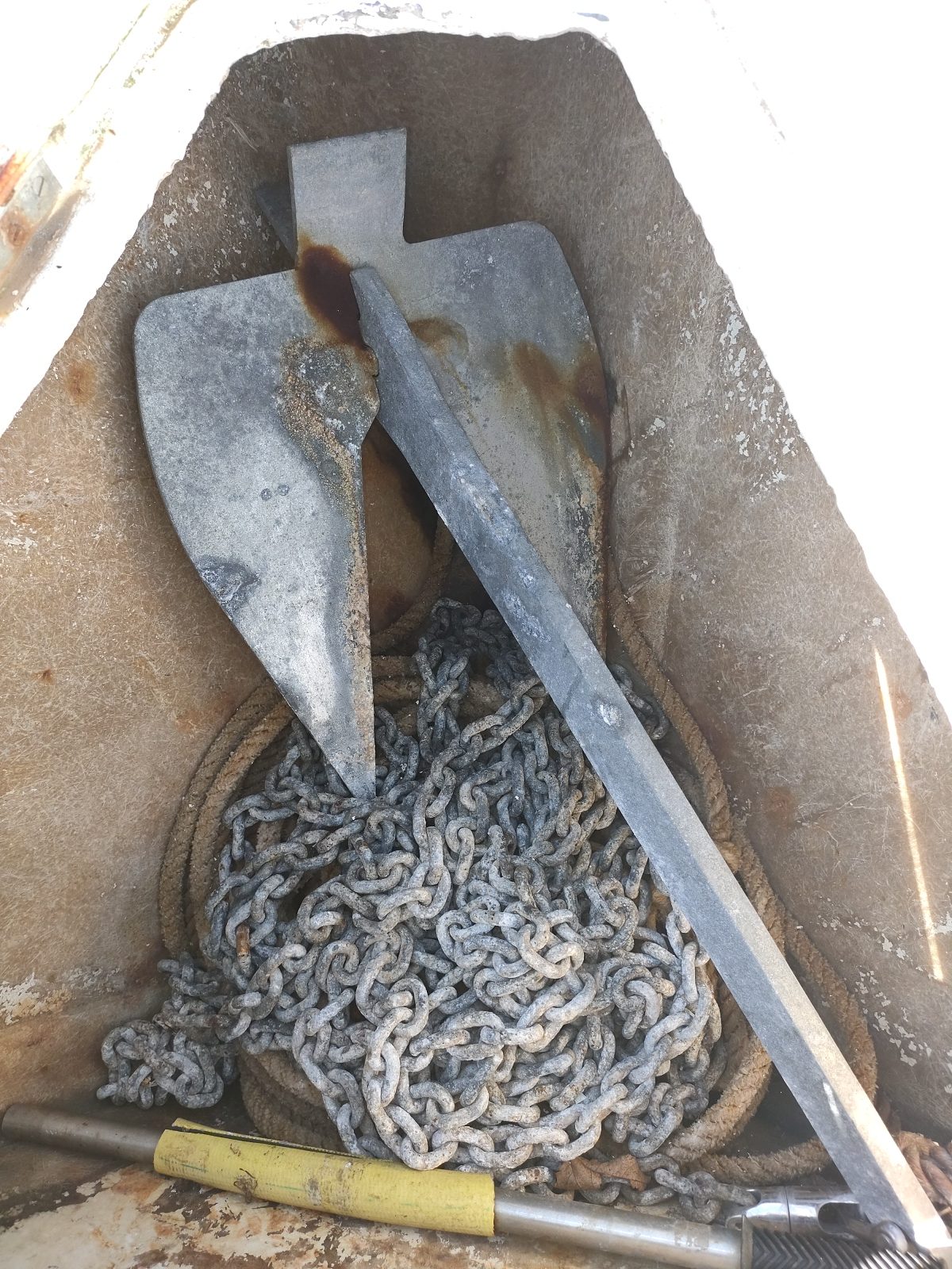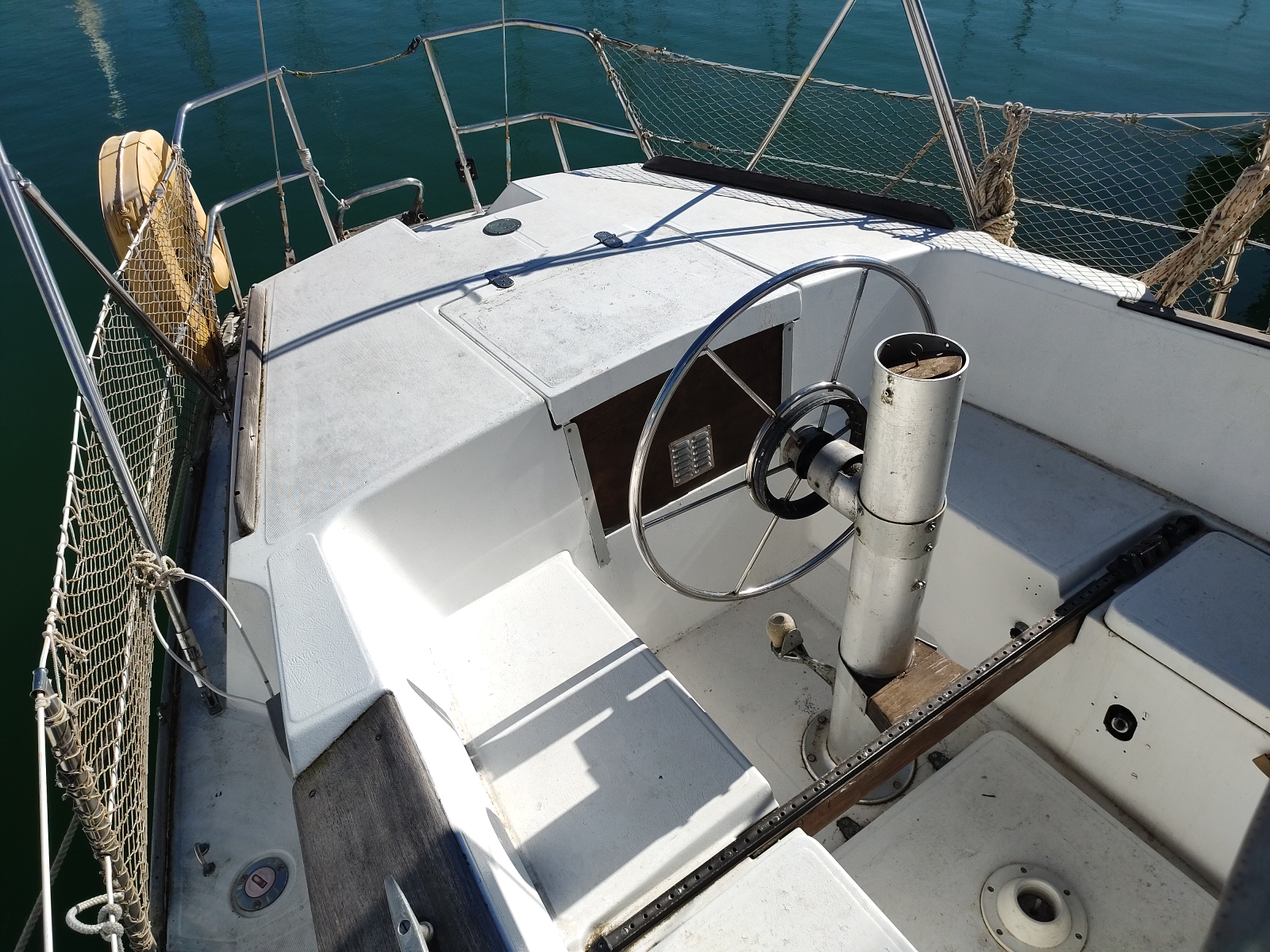 Divers : Table de cockpit : oui Echelle de bain : oui Mouillage : 1 x 12 kg. Brittany (2017) + 30 m. chaîne (environ) Guindeau manuel : oui