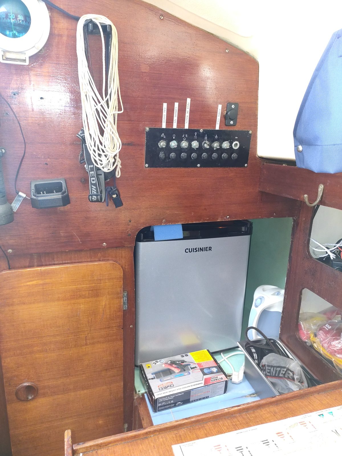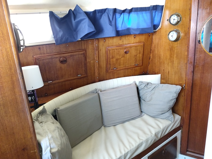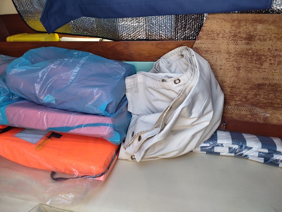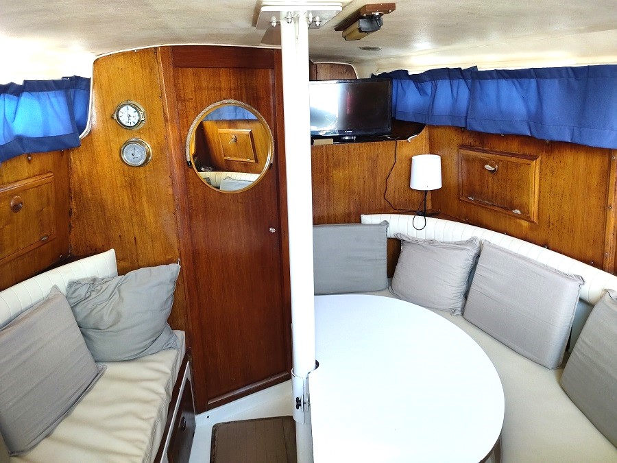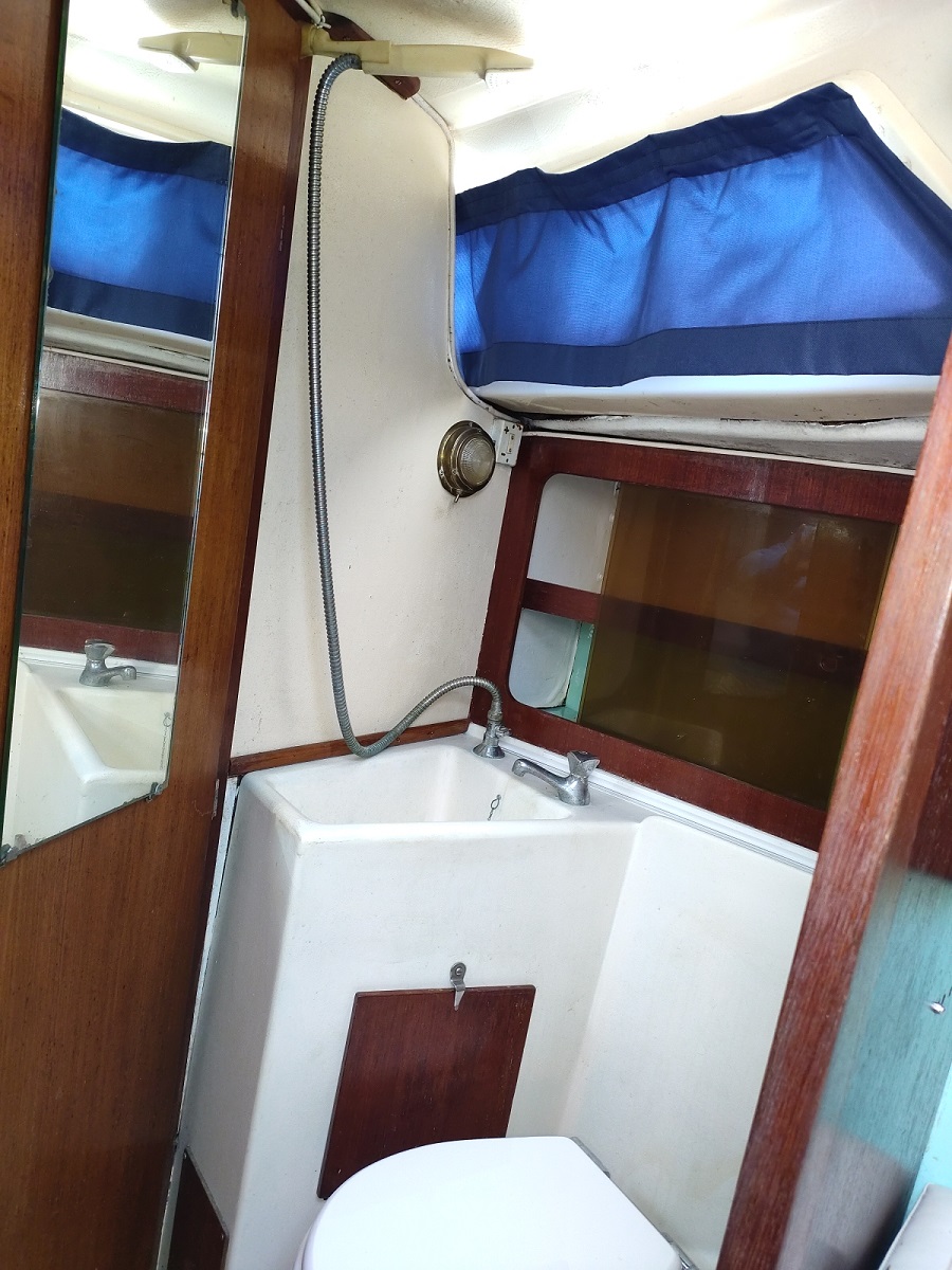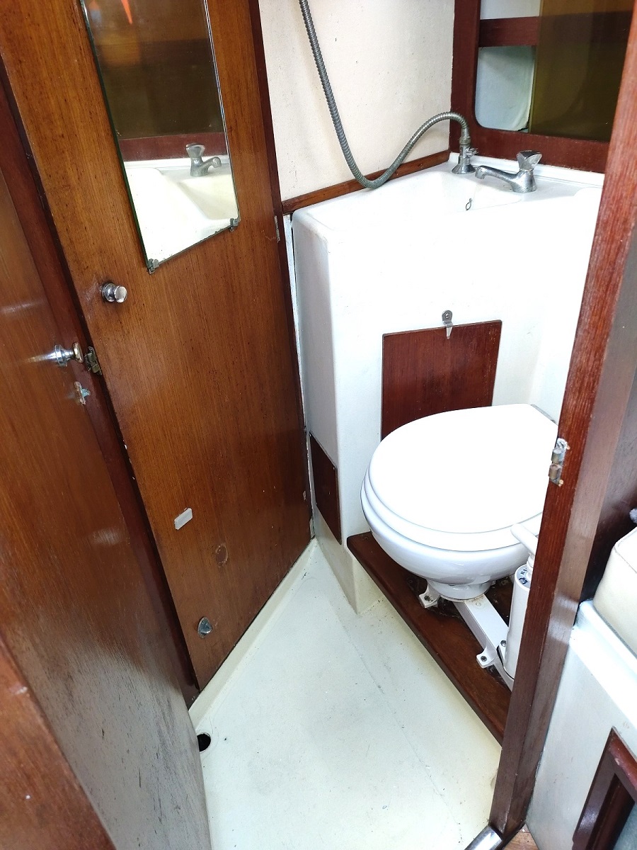 Vie à bord : Cuisine : oui Réchaud gaz : oui Glacière réfrigérante : oui Eau sous pression : 1 oui WC : classique Réservoir Eau : 2 x 70 L. souple vannes et passe-coques wc : 2021 Sellerie cabine et carré : 2021