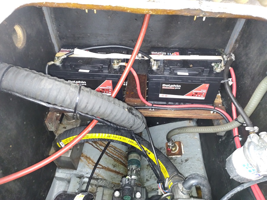 Electricité : Batterie Moteur : 1 x 12 v. 72 Ah. (2023) Batteries Service : 1 x 12 v. 70 Ah. (2023) Chargeur de batteries : oui Circuit 220 v. et 12 v. : avec prises 220 v. + prise 12 v. Disjoncteur différentiel : oui