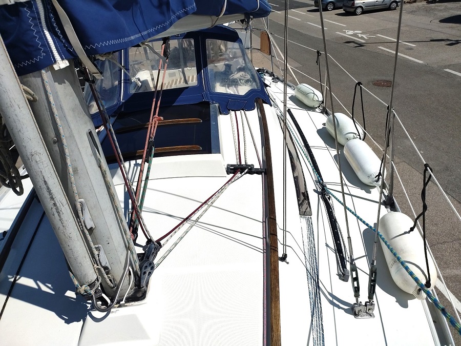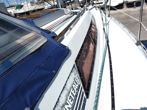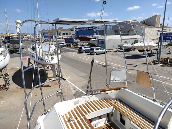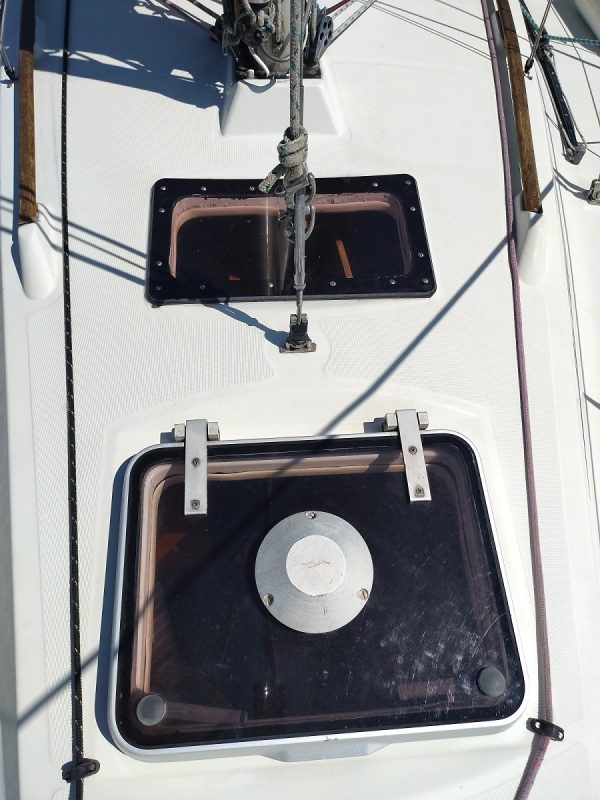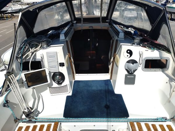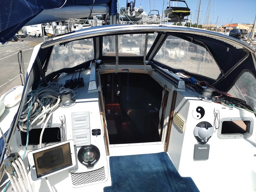 Divers : Table de cockpit : 2022 Echelle de bain : oui Guideau manuel : oui Mouillage : 1 x 12 kg. avec 30 m. chaîne (2023) Portique pour panneaux solaires : oui
