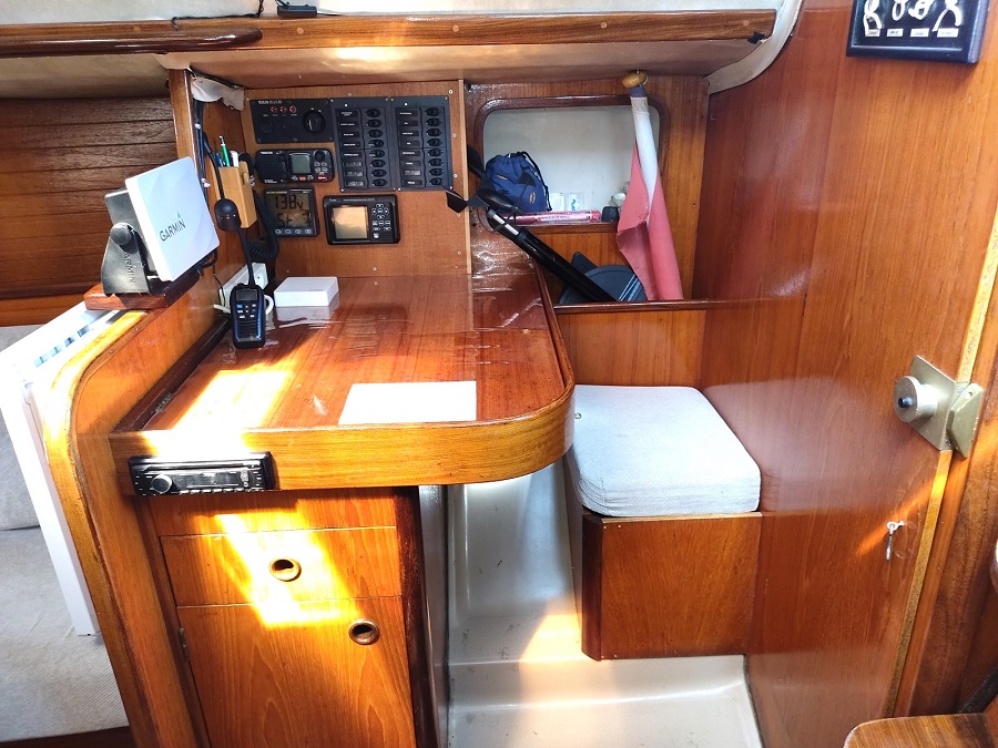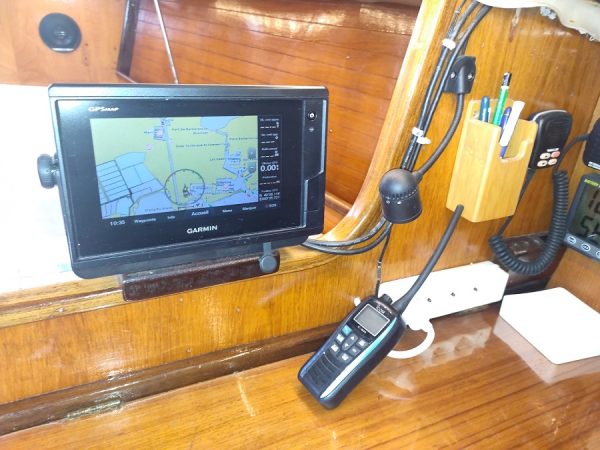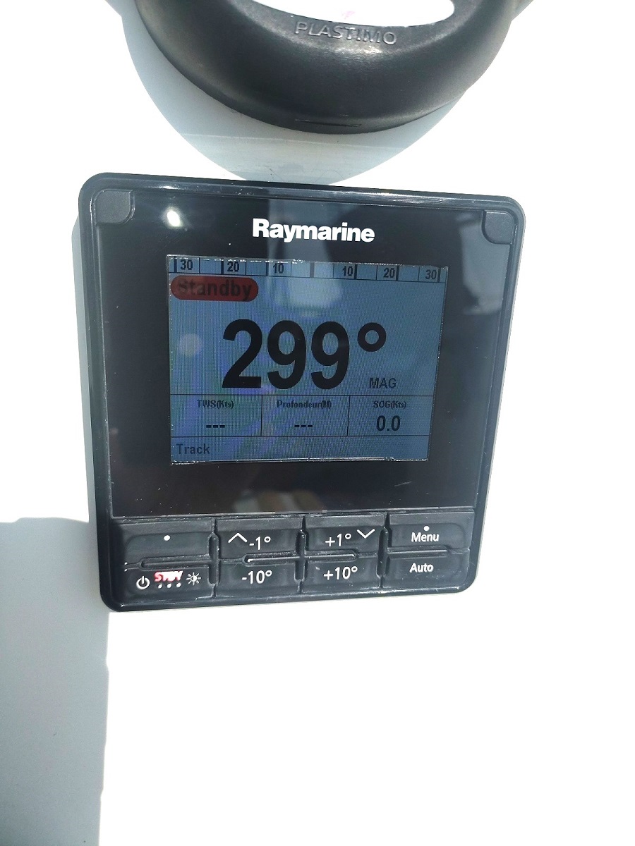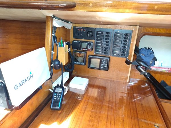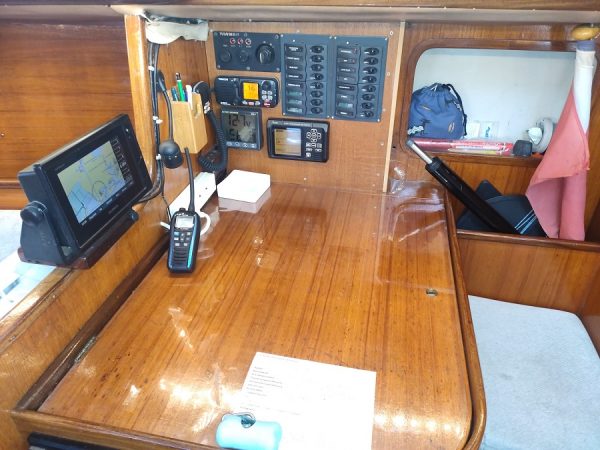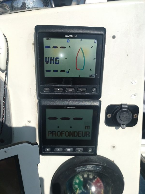 Electronique : Loch et Speedo : Raymarine Sondeur : Raymarine Anémomètre et Girouette : G-wind wireless (2017) VHF : Navicom RT 550 AIS Transpondeur AIS : 2021 Pilote Automatique : Raymarine EV 100(2017) GPS Map : 422 + carte Blue Chart