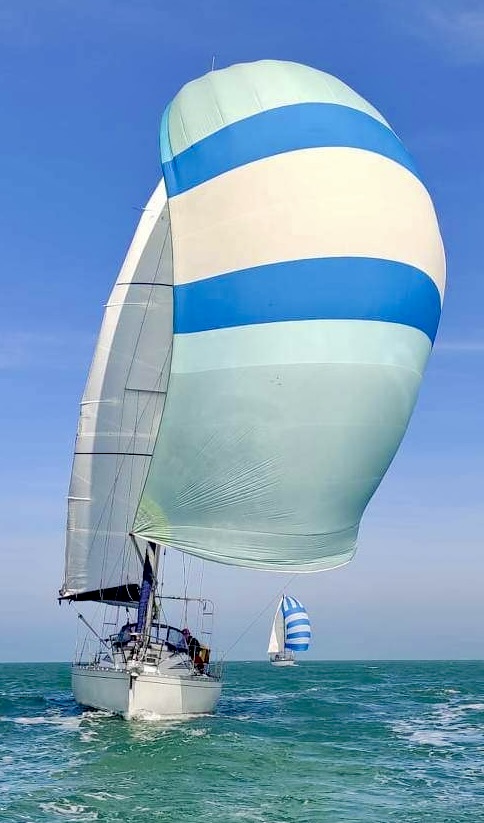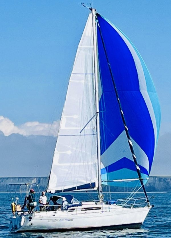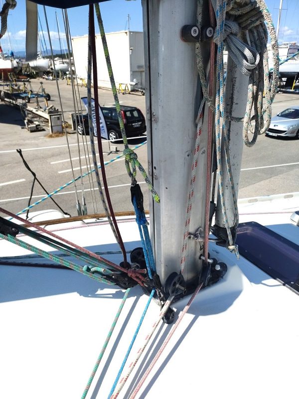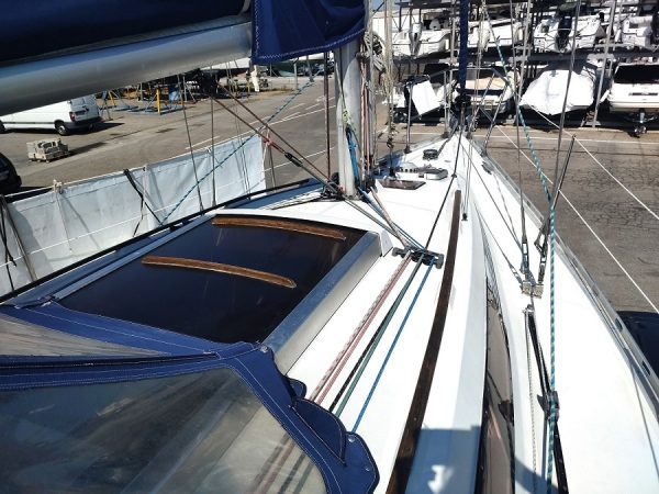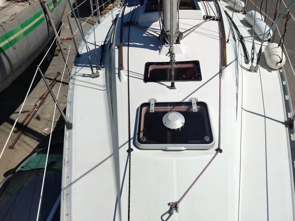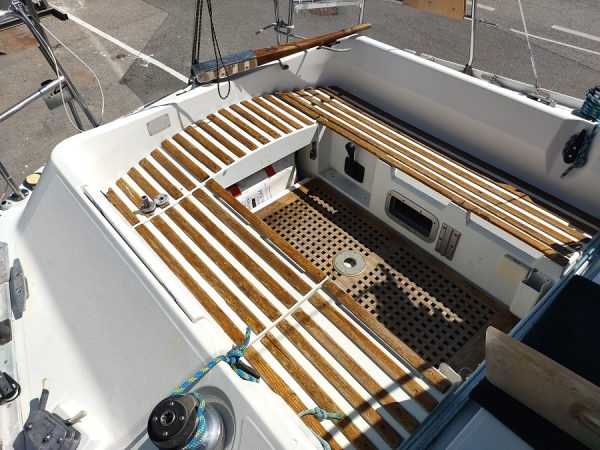 Voiles et Gréement : Grande Voile : Lattée 2 ris (2018) Vide-mulet : 2022 Génois : 30 m² Enrouleur de génois : LS 130 ( 2023 ) Spi symétrique : oui Tangon : oui Lazy bag & Easy Jack : 2018 Spinnlocks : 2018 ( prise de ris automatique ) Drisse de spi : 2020 Winchs self-tailings : 2 x st 40 Lewmar