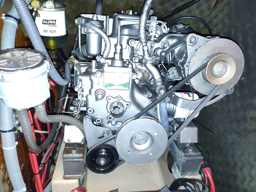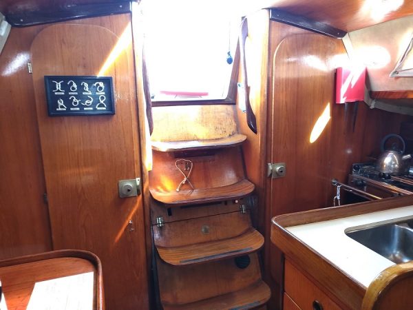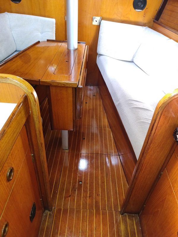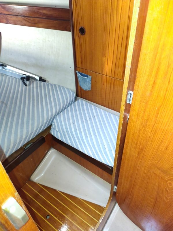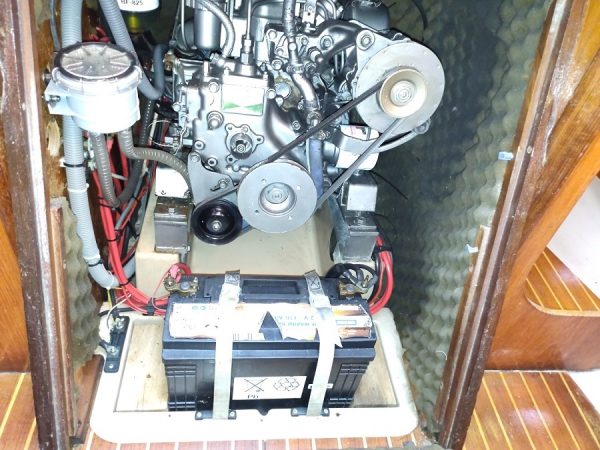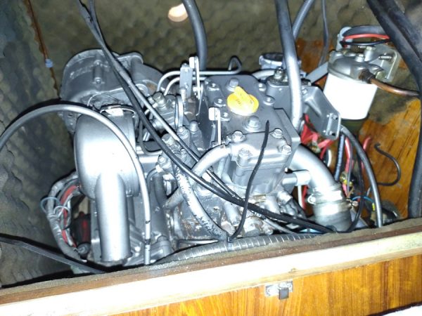 Moteur : YANMAR 18 cv IB – Diesel Type Moteur : 2GM Nombre d’heures : NC ( Révision complète 2019 + entretien annuel 2025 ) Transmission : ligne d’arbre ( Bague Hydrolube 2022. Presse-étoupe 2023) Type d’hélice : Bipale avec coupe-orin Réservoir Carburant : 1 x 35 L. ( environ) Type réservoir : Inox