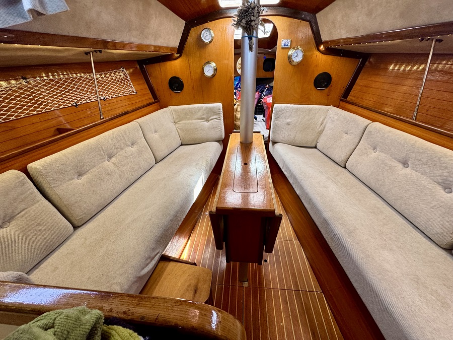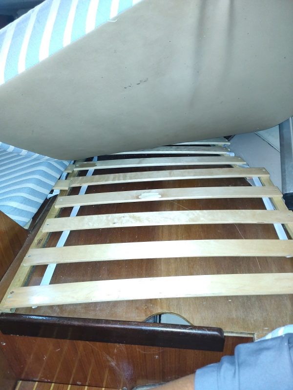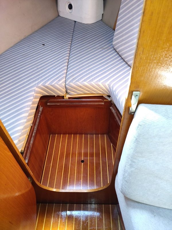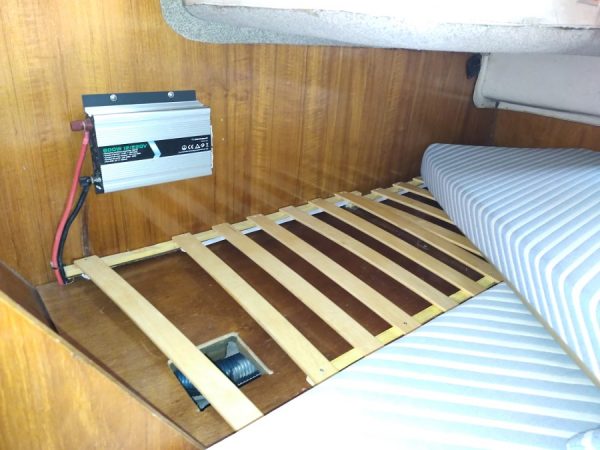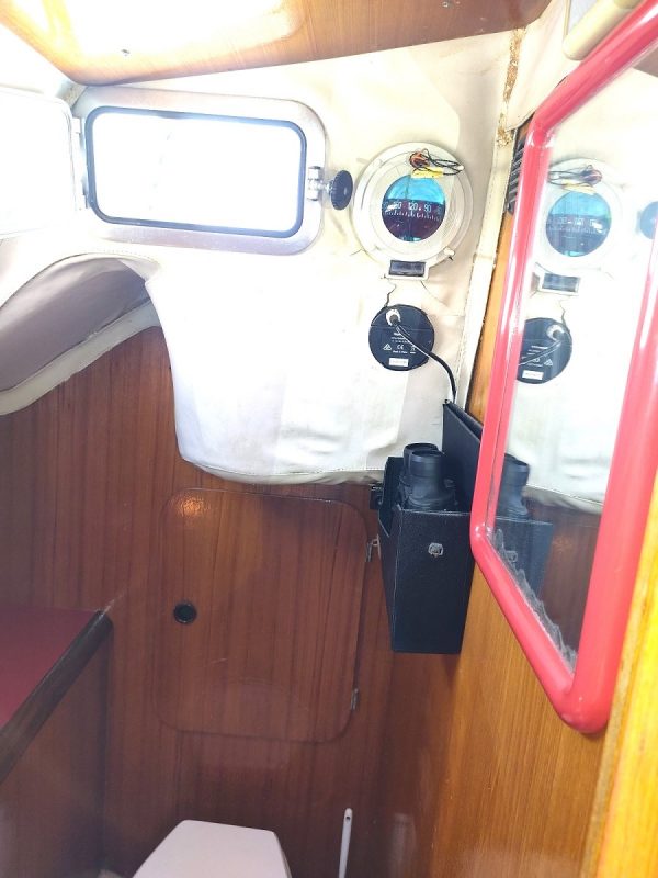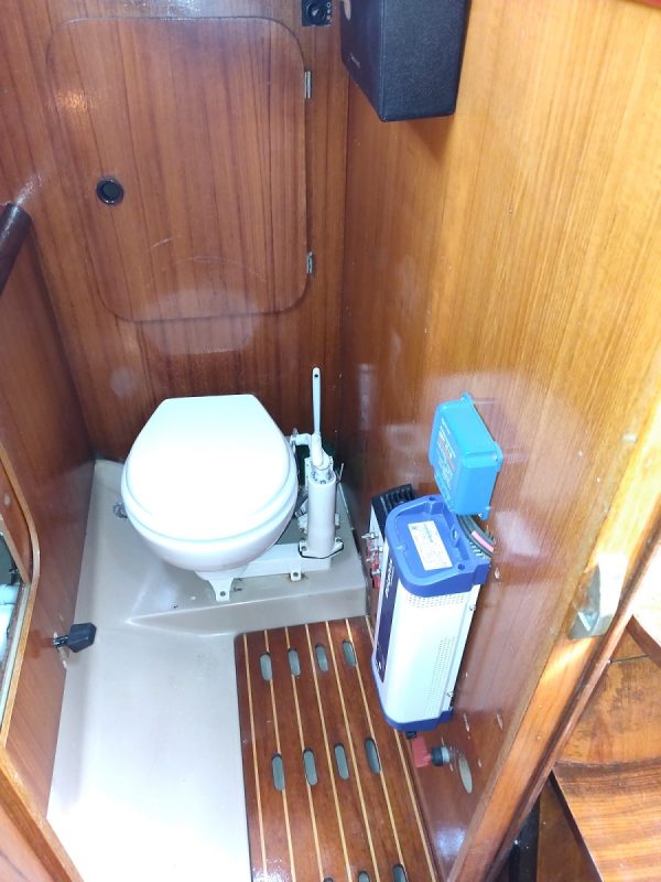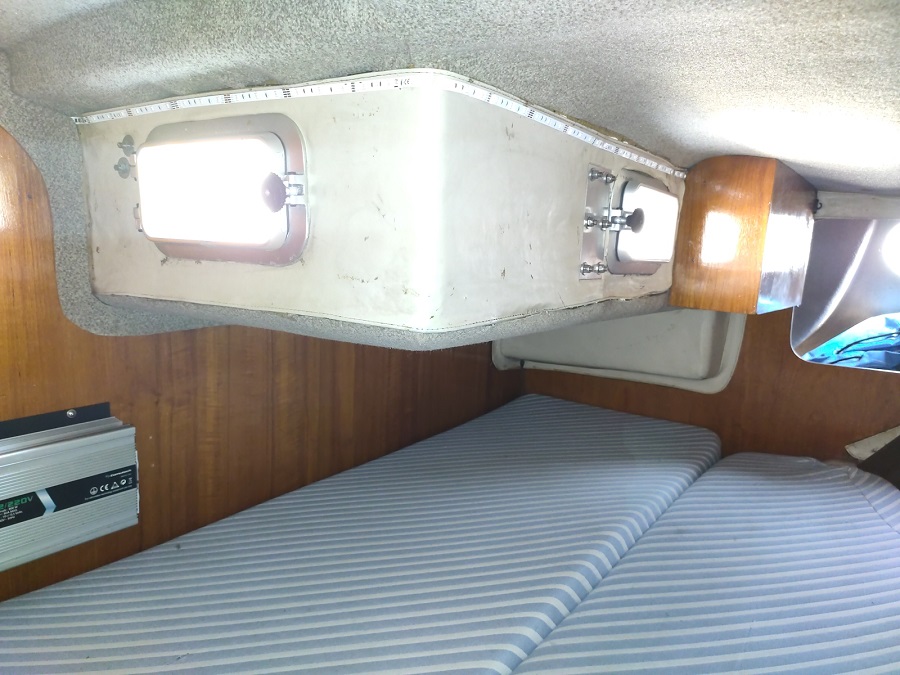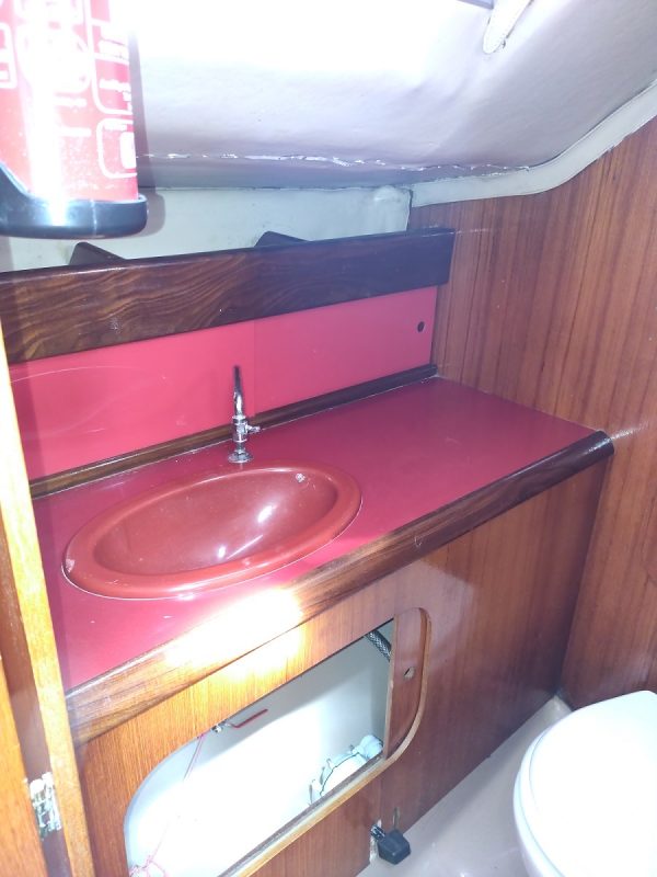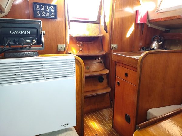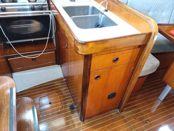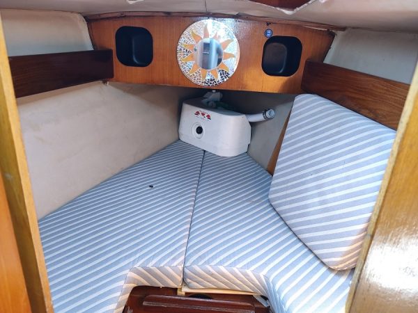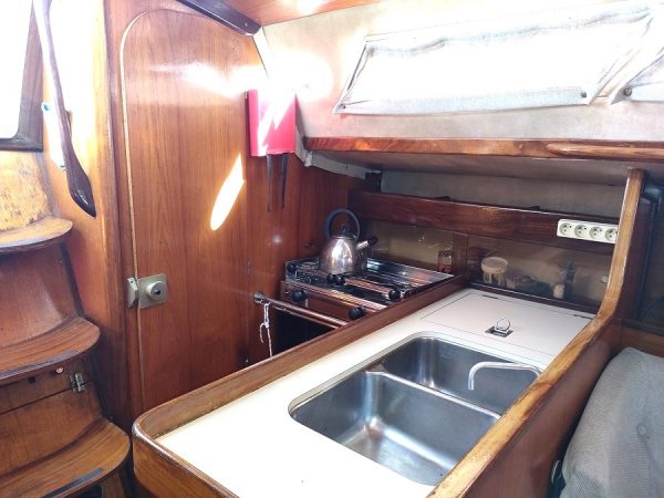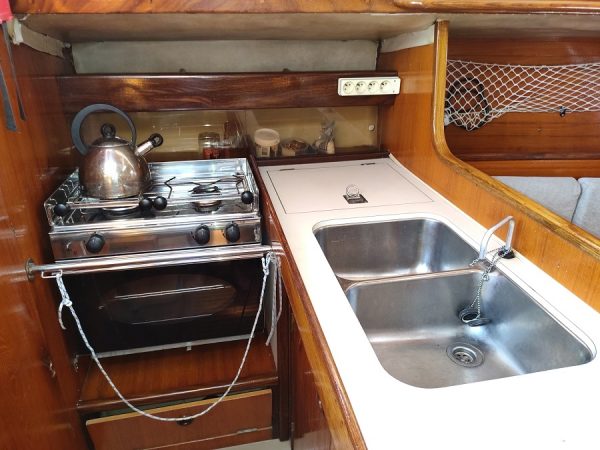 Vie à bord : Cuisine : oui + Hublot supplémentaire Gazinière : 2 feux (2017) Four : 2017 Frigo : 1 Pompe à pied eau douce : x 2 ( cuisine et salle de bains ) WC : classique Réservoir Eau : 1 x 200 L. souple Hublots et Plexis : 2022 Vannes et passe-coques : 2023 Chauffage : sur 220 v. Réservoir eaux noires : 2023 Matelas 2 Cabines : 2022 Sellerie carré : 2022