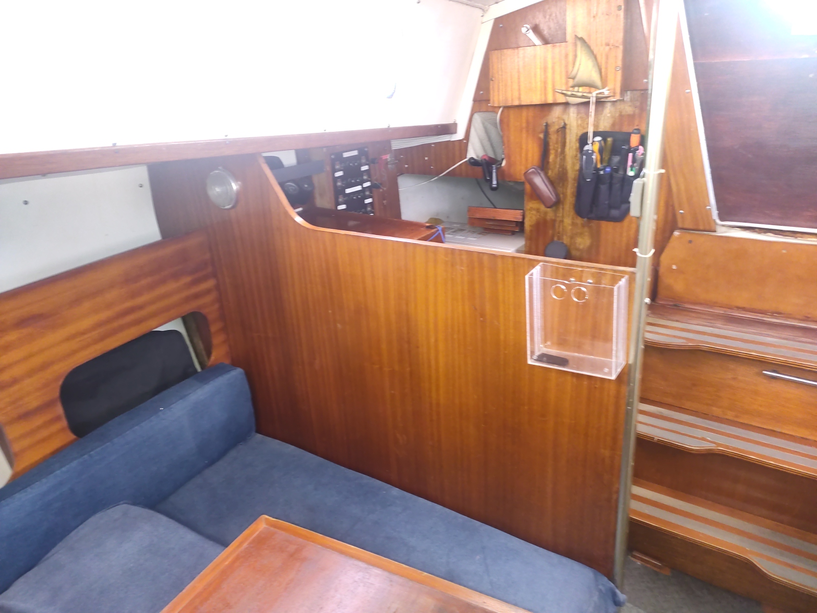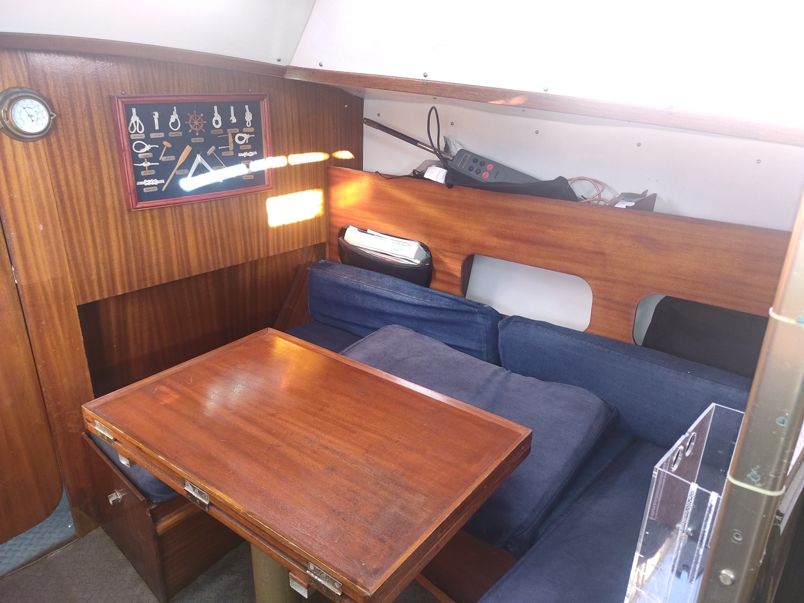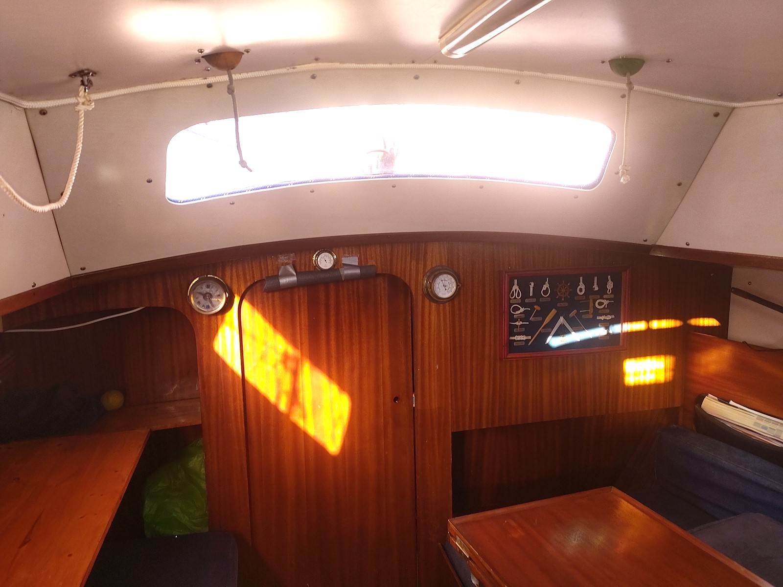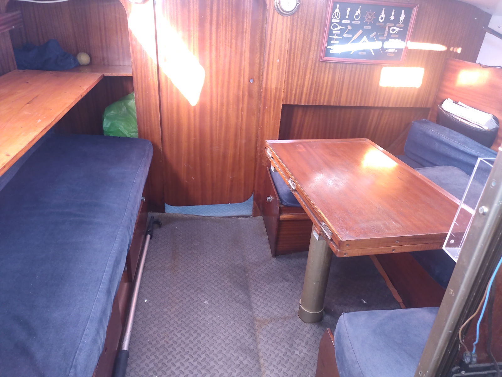 Divers : Table de cockpit : oui Echelle de bain : oui Plateforme arrière : oui Guindeau Electrique : oui Mouillages : 1 x 8 kg. avec 30 m. de chaîne (environ) Sellerie de cockpit : oui