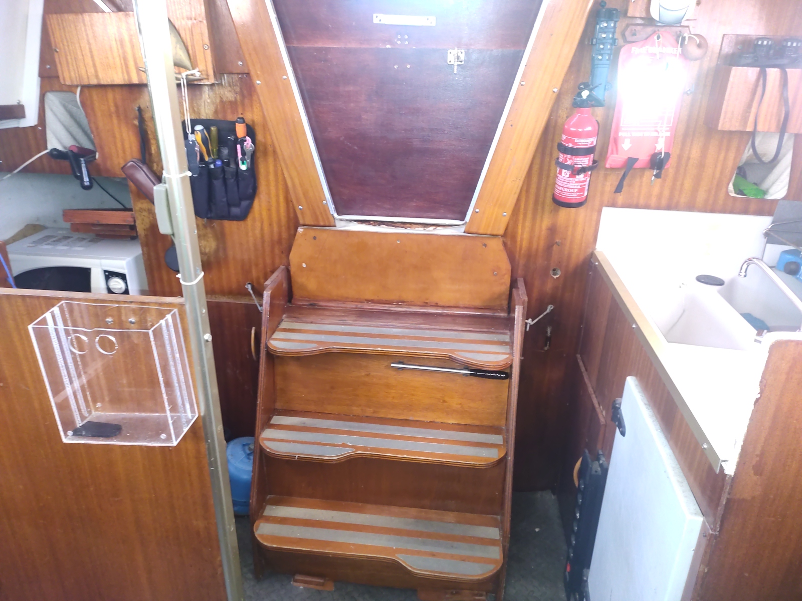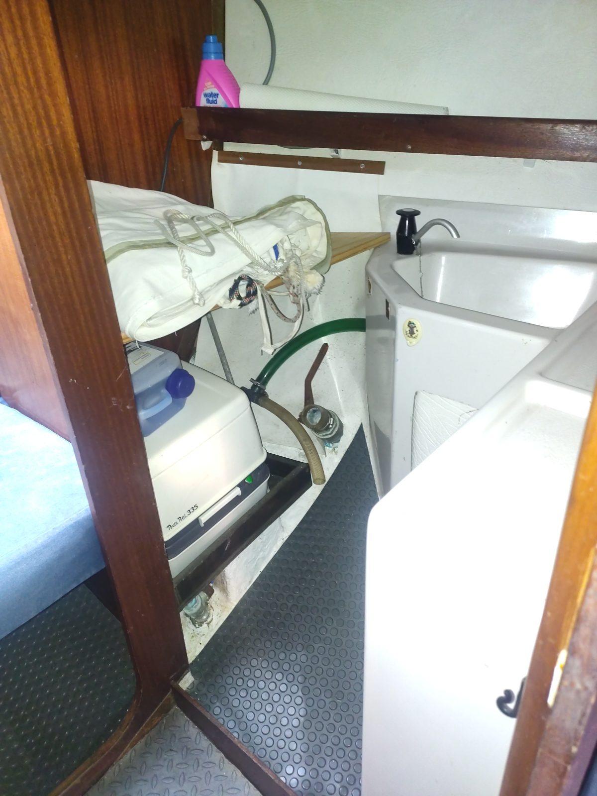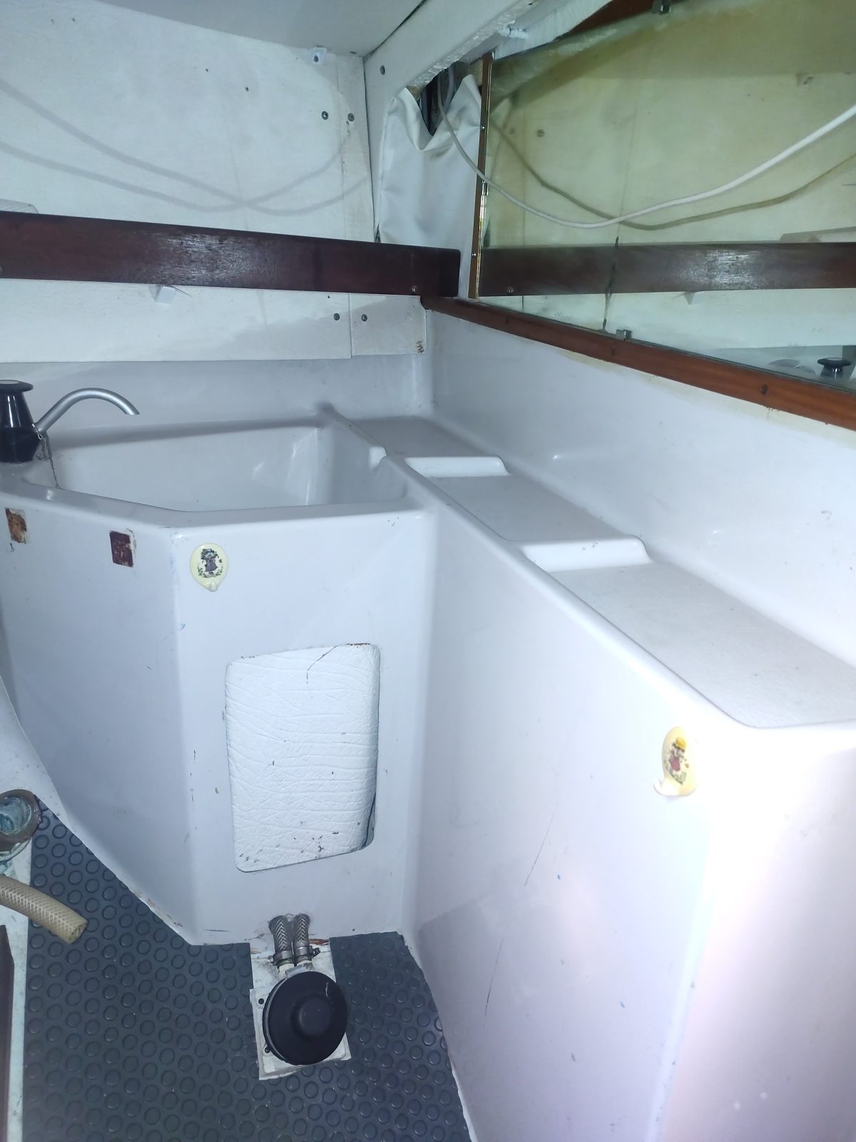 Vie à bord : Cuisine : oui Réchaud : oui Glacière réfrigérante : oui Pompe à pied eau douce : 1 Salle de bain : 1 WC : chimique Réservoirs Eau : 1 x 60 L. Réservoir souple Micro-ondes : oui