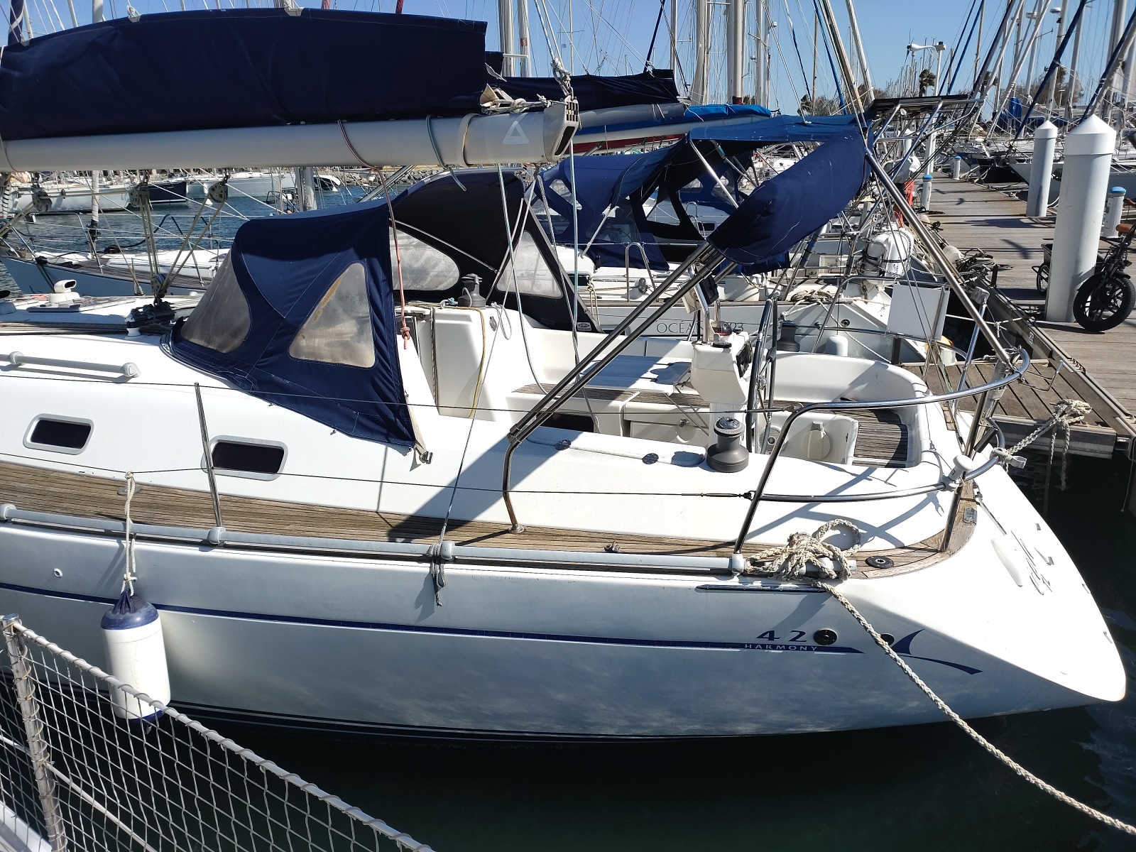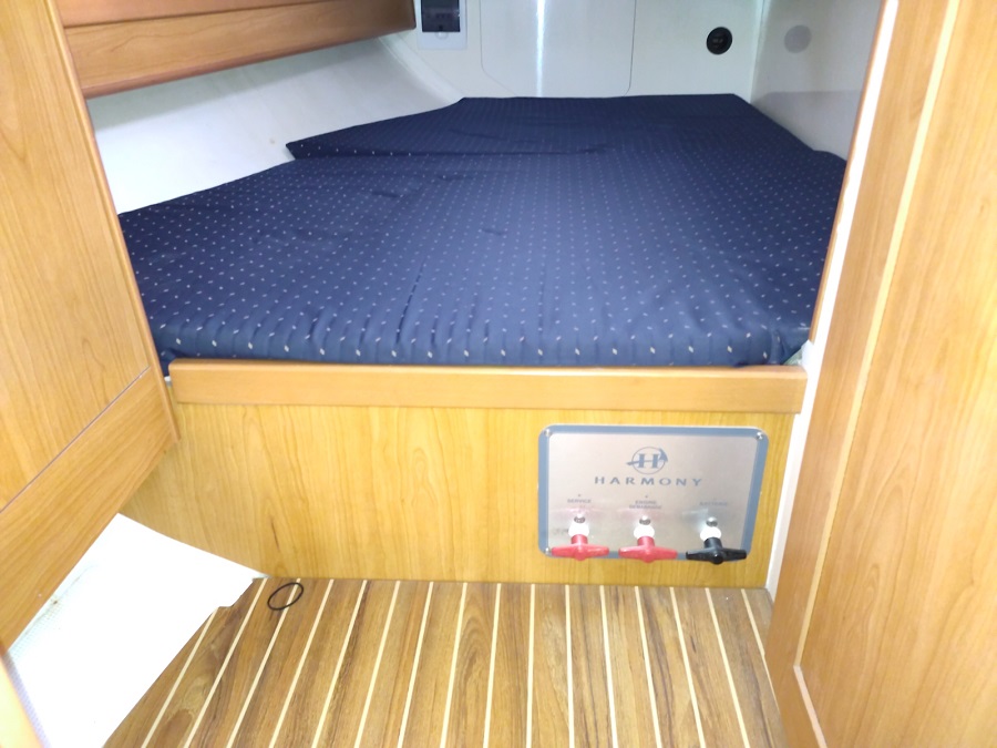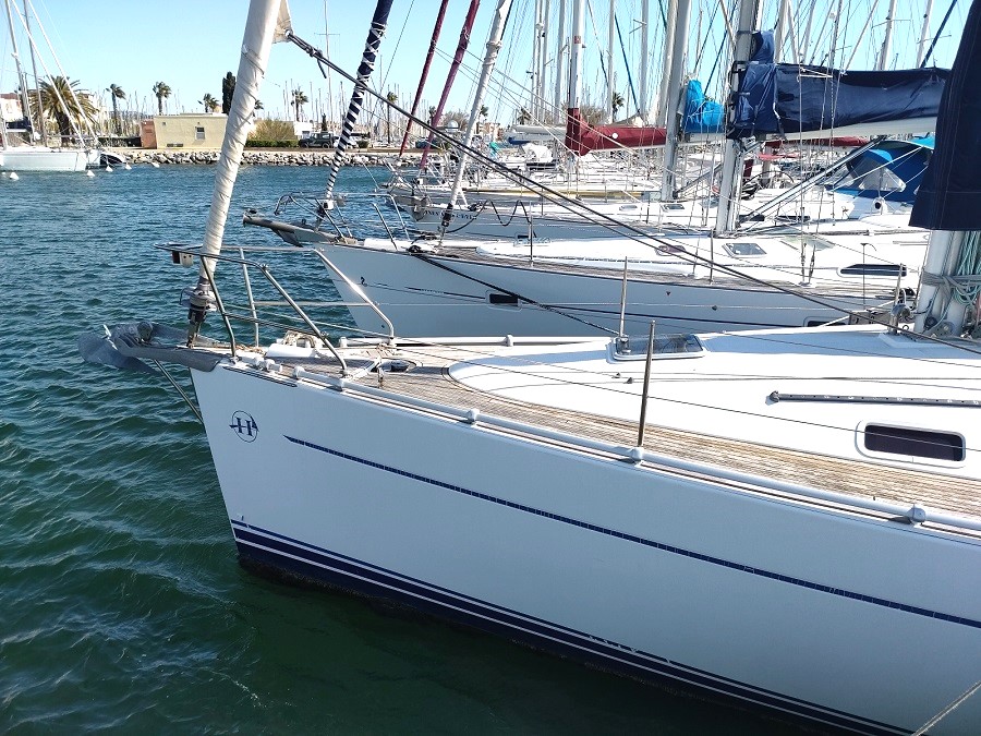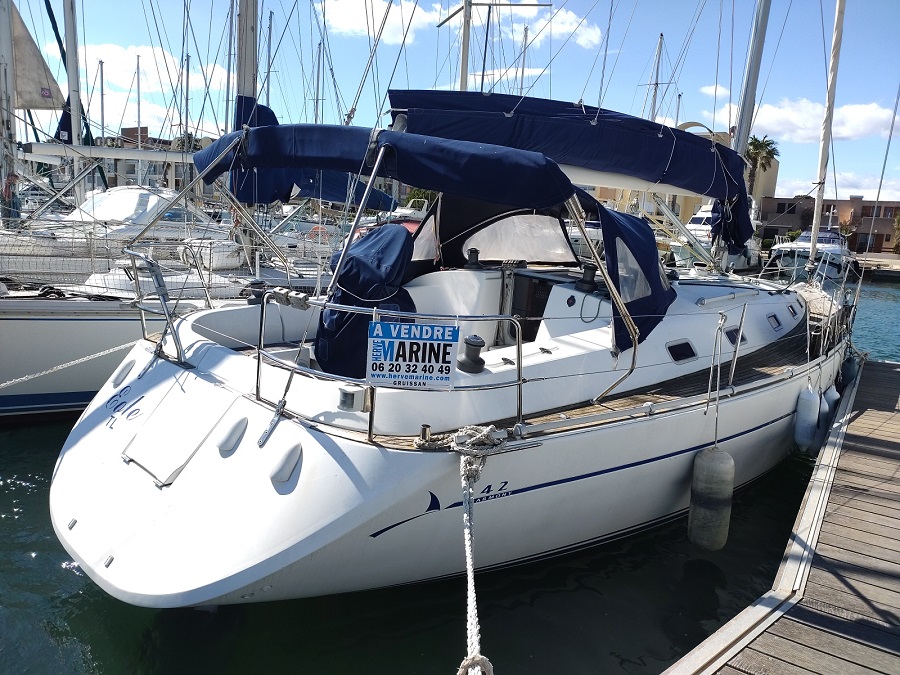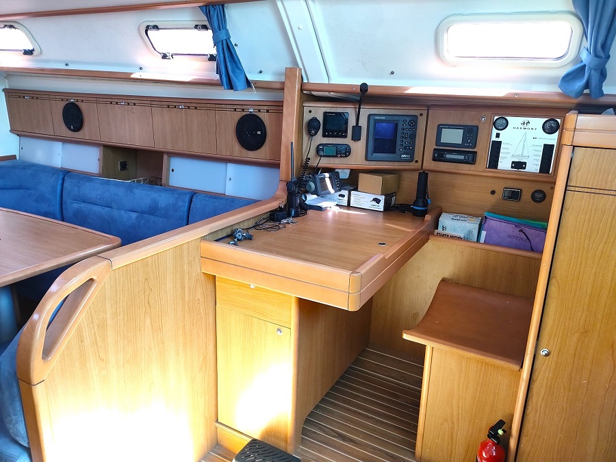 HARMONY 42 en VERSION 3 Cabines et 2 Salle de Bains. Un CROISEUR Equilibré, aux Lignes CLASSIQUES, BONS Marcheurs à toutes les ALLURES. De l’extérieur, on PERCOIT Rapidement le Potentiel du BATEAU en Marche, avec son FRANC BORD Modéré et ses LIGNES TENDUES. Celui-ci est Bien EQUIPE avec : GV Full-batten + Genaker sur Emmagasineur +Winch Electrique + Propulseur d’Etrave + Radar + Chauffage + Barre à Roue REPLIABLE+ Annexe + HB. Moteur VOLVO 55 cv avec 857 Heures de Fonctionnement. Belle Cabine AVANT avec son Lit Déporté. INTERIEUR Trés Lumineux. Table à Cartes IMMENSE. ETAT des VERNIS et de la SELLERIE EXCEPTIONNEL. Place Port Possible.