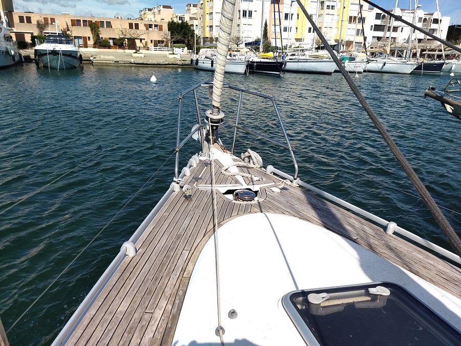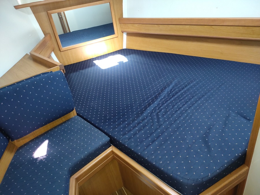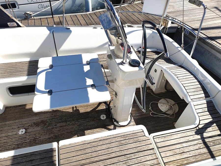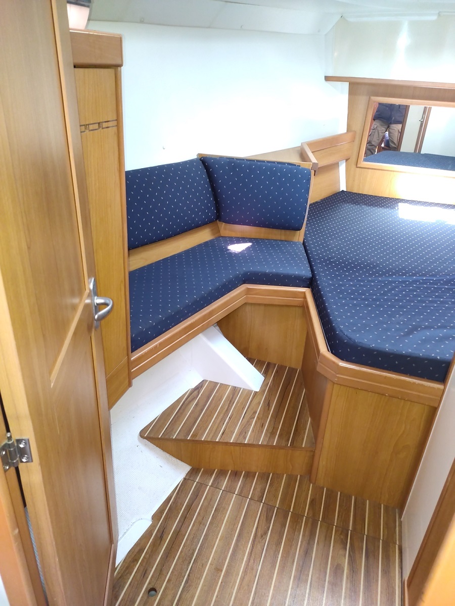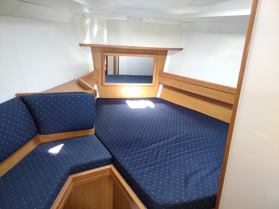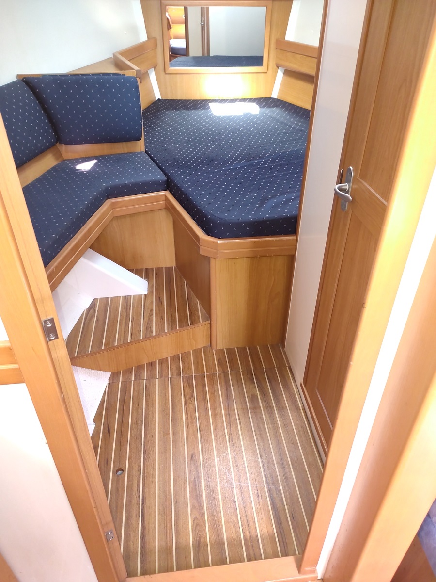 Version : 1 cabine avant double – 2 cabines arrière double = 2 Salle de bains -Pont Teck – Cockpit Teck – Propulseur d’étrave