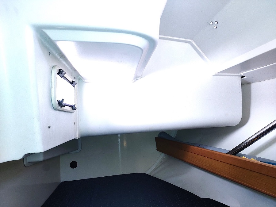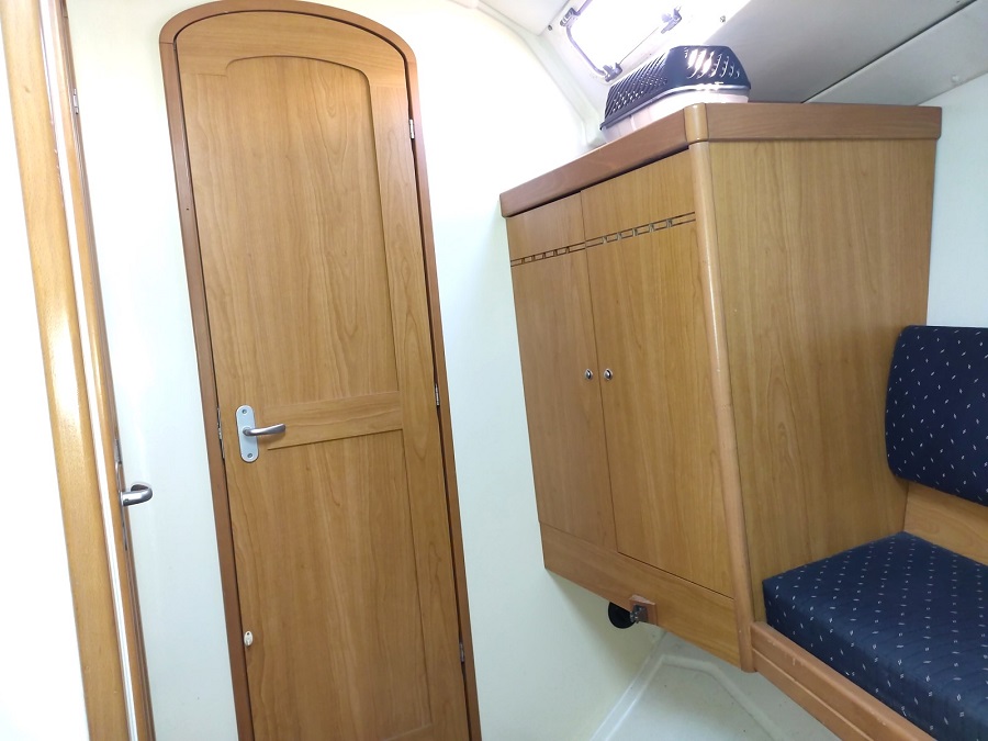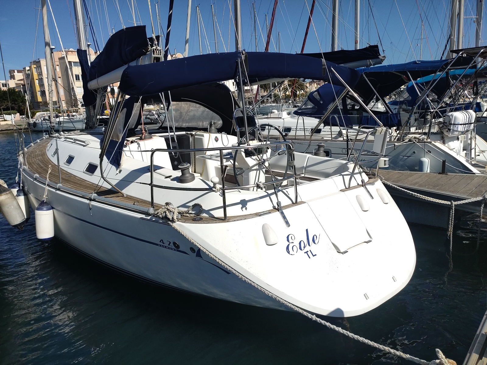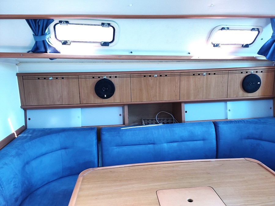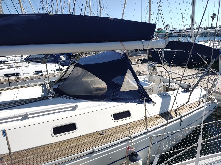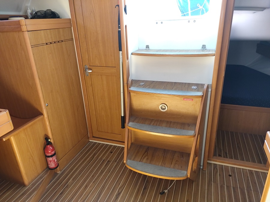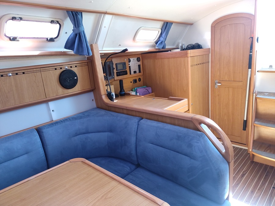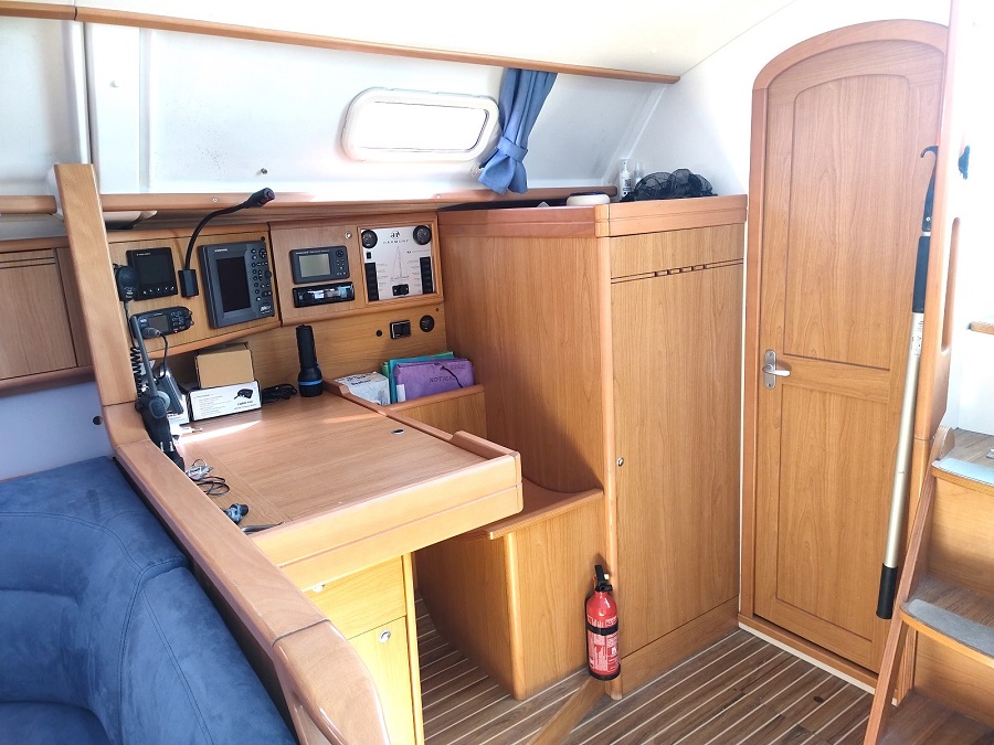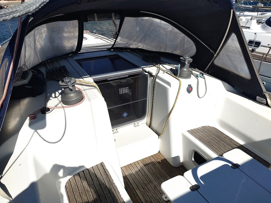 Divers : Taud de soleil : oui Bimini : oui Capote de descente : oui Chaise Hors-bord : 2020 Table de cockpit : oui Echelle de bain : oui Guindeau électrique : oui Mouillages : 1 x 15 kg. Delta avec 50 m. de chaîne de 10 Annexe : 2019 Hors-bord : Honda 2,5 cv Passerelle : oui Housse de barre à roue: oui Barre à roue repliable : oui