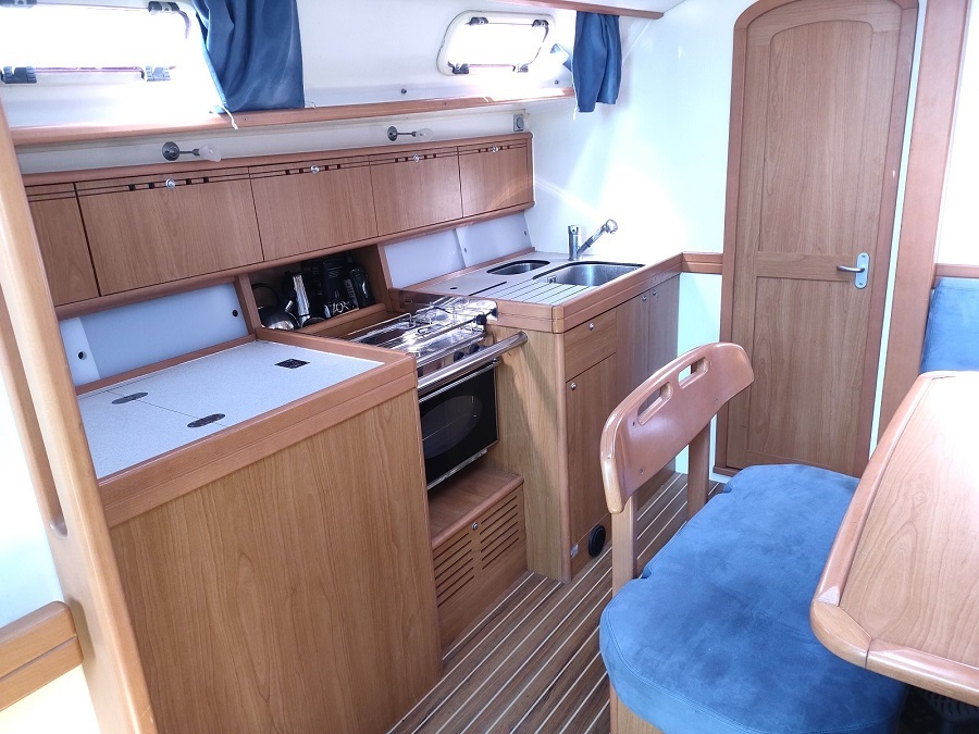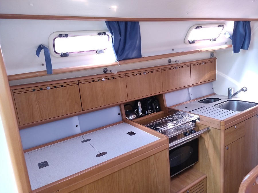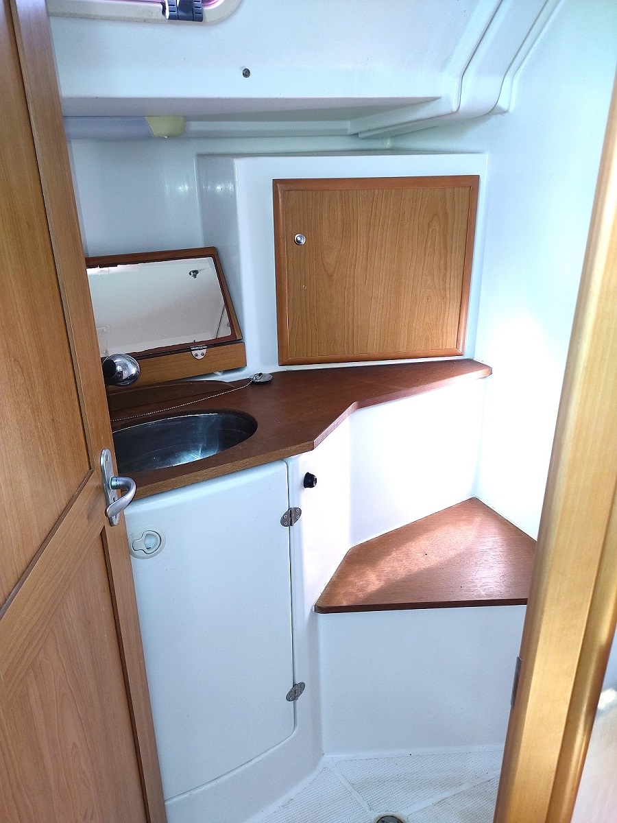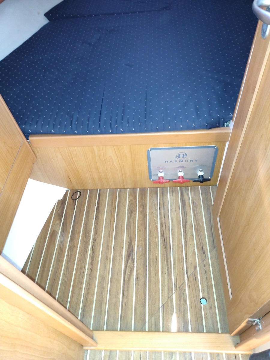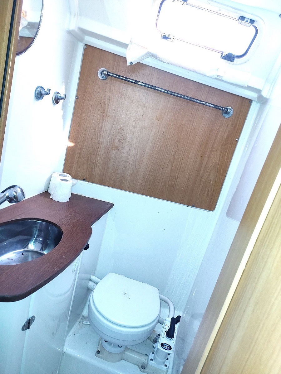 Vie à bord : Cuisine : oui Four : oui Gazinière : 2 feux Frigo : 200 L. Eau sous pression chaude et froide : oui Salle de bain : x 2 WC : x 2 Réservoir eaux noires : 70 L. ( environ) Douche : 2 Douche de pont : oui Réservoirs Eau : 2 x 250 L. rigide