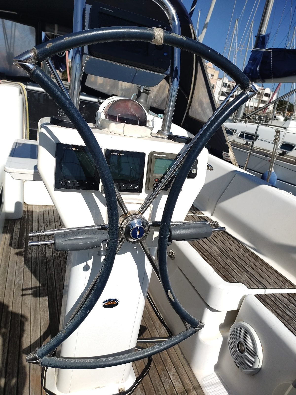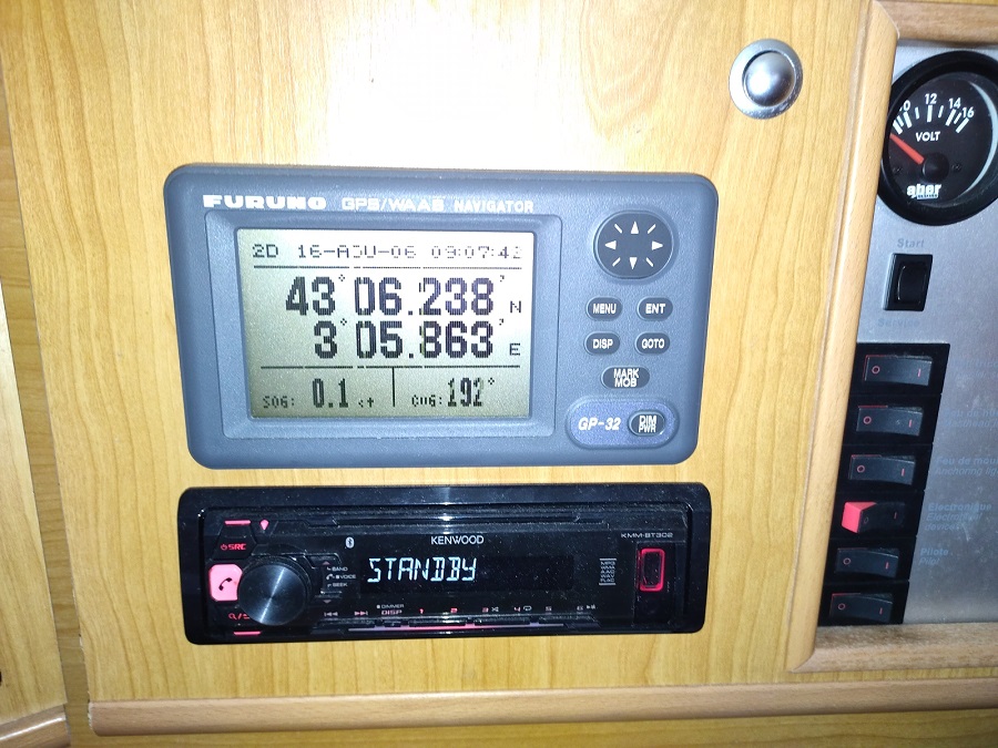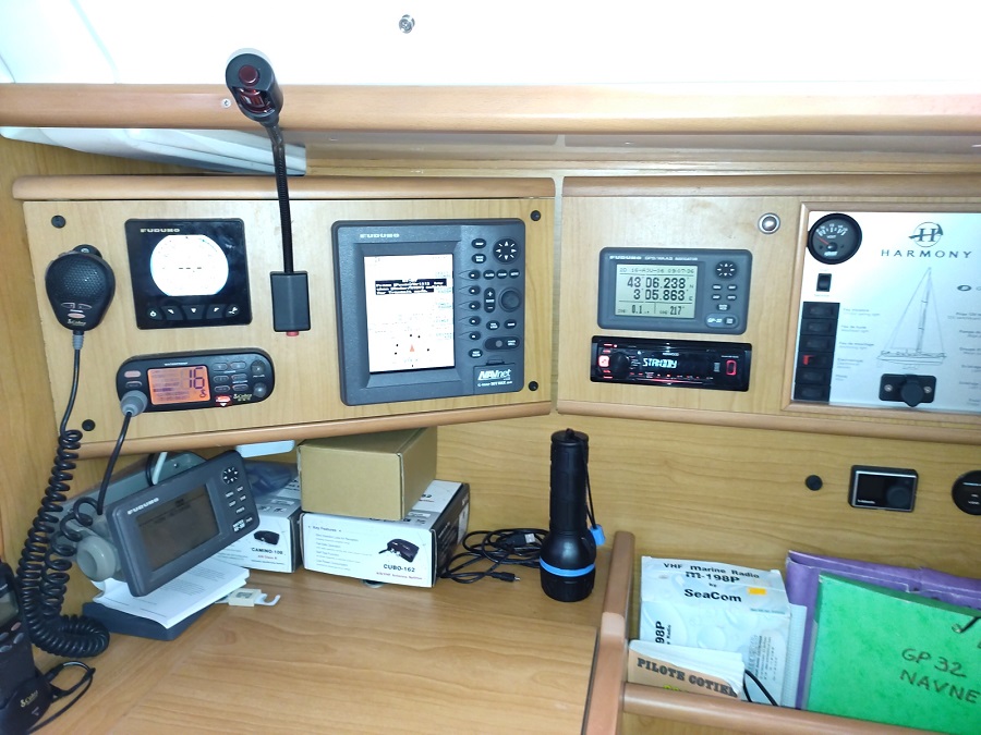 Electronique : Loch : Raymarine Sondeur & Speedo : Raymarine (2018) Anémomètre et Girouette : Raymarine ( A réviser) VHF : ASN Cobra+ VHF Portable Cobra Pilote Auto. : Navipilot révisé en 2018 GPS Traceur : Navnet C-Map GPS : Furuno GP 32 Radar : oui Radio : Pionner (2025)