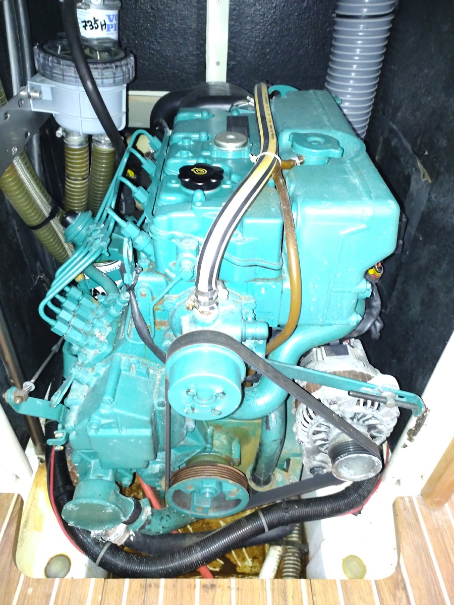 Moteur : Volvo 55 cv – IB Diesel – Type moteur : D2 55 Nombre d’heures : environ 856 H. Transmission : ligne d’arbre Type d’hélice : Bipale Réservoir Carburant : 1 x 200 L . rigide Propulseur d’étrave : oui