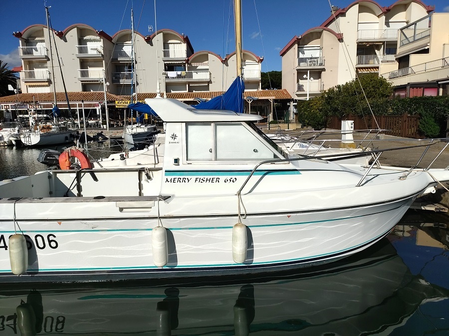 MERRY FISHER 650 Ayant Très PEU NAVIGUE. Vraiment BIEN EQUIPE avec : GPS+ Guindeau électrique + Eau sous pression + wc +Réchaud + Moteur HB de SECOURS. Inverseur de 2017. Echangeur Révisé en 2023. TURBO de 2023. Vanne et passe-coque 2023. Entretien Moteur 2025 + Carénage juillet 2025. TRES BON ETAT GENERAL  de l’Ensemble. ENTRETENU Par PROFESSIONNEL Annuellement depuis 18 Ans. Dans la même famille depuis 2008. Pour la PECHE ou passer un week-end à bord GRACE au Petit COMFORT. Place de port Possible. A VOIR