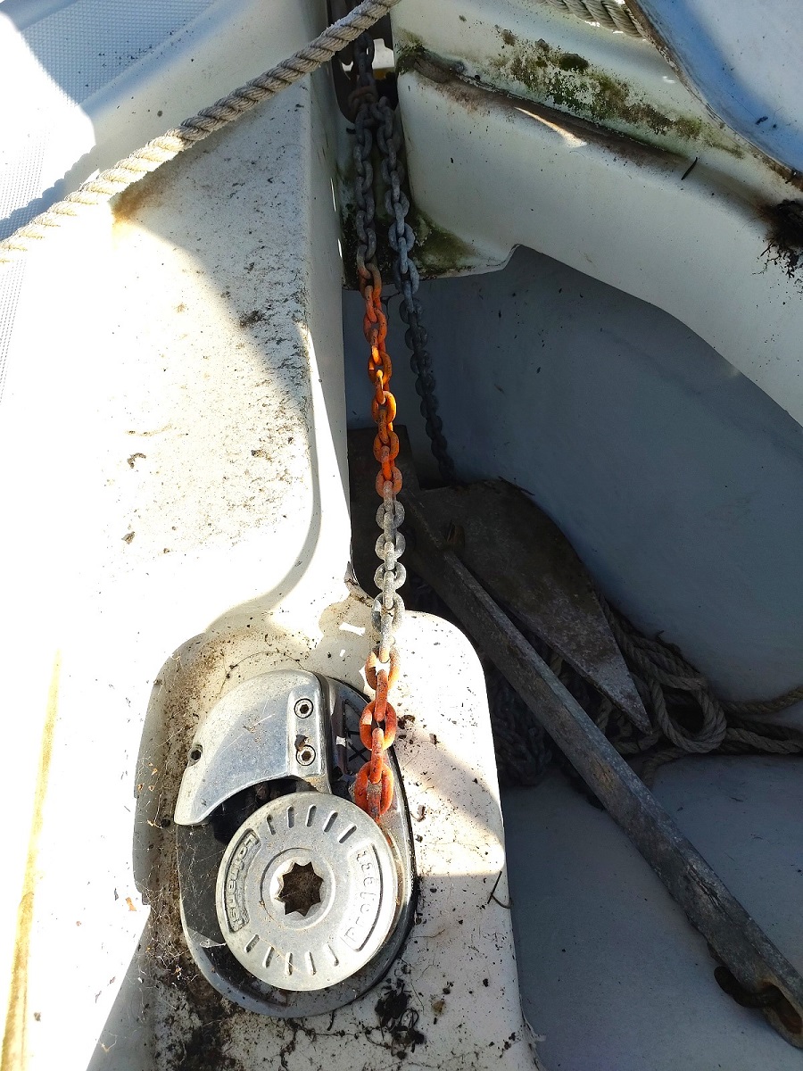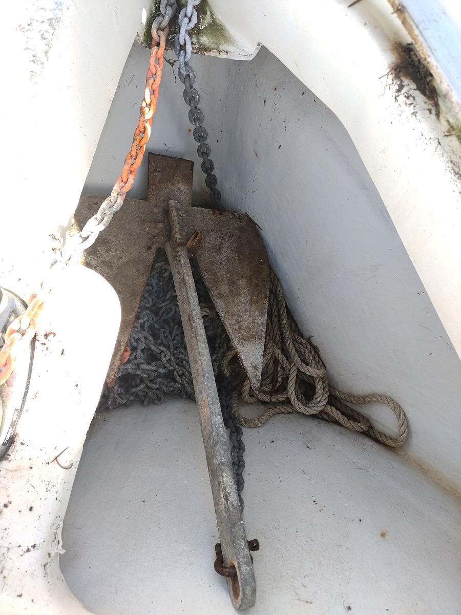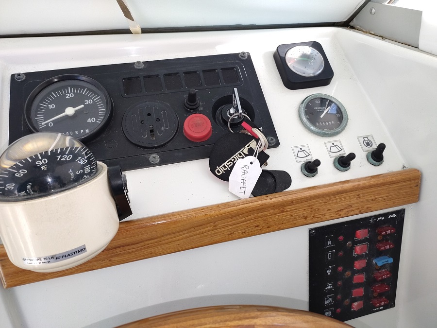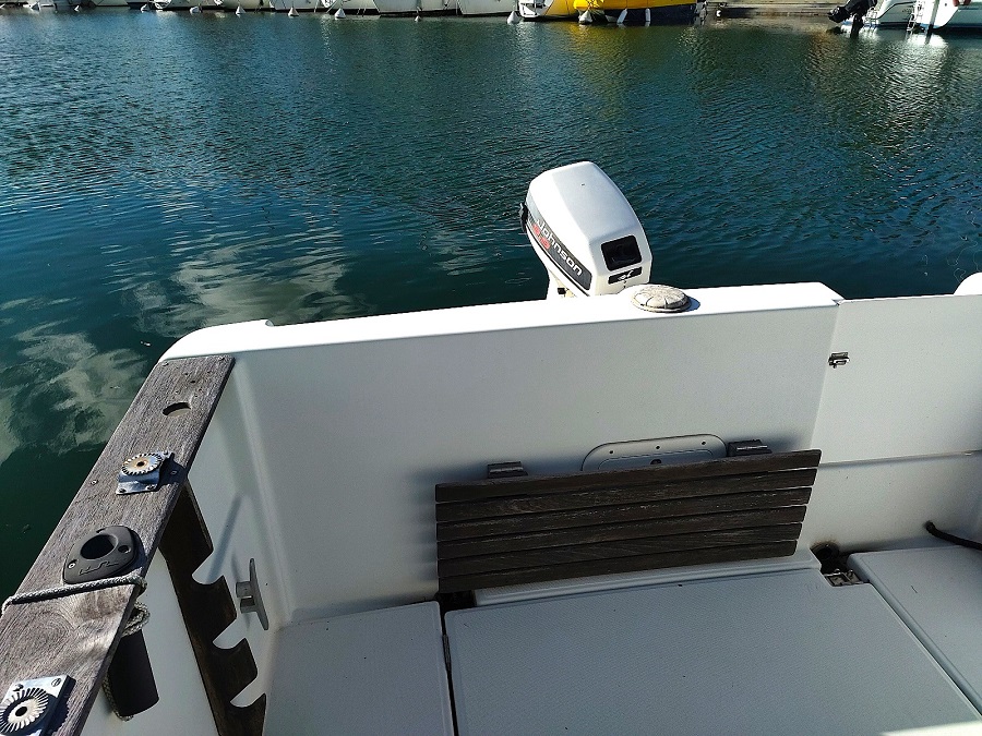 Divers : Echelle de bain : oui Plateforme arrière : oui  Guindeau électrique : oui Mouillage : 1 x 80 kg. ( environ) et 20 m. chaîne (environ) Moteur Hors-bord : Evinrude 9,9 cv ( 2 T) A réviser