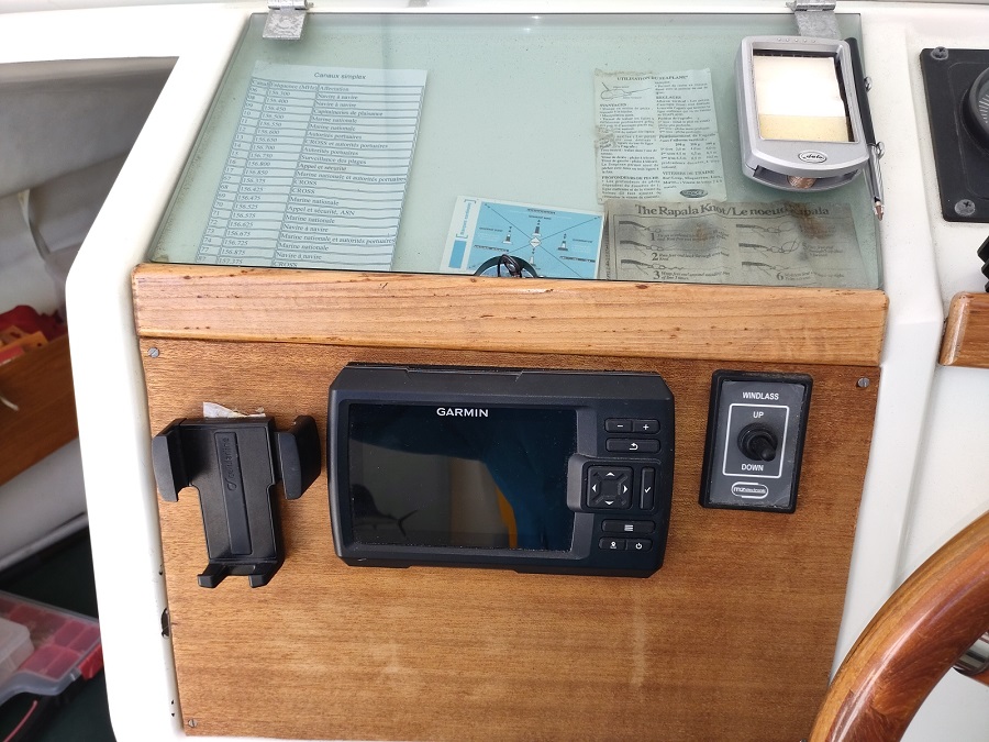 Electronique : Sondeur et Speedo : oui GPS : Garmin Lecteur de cartes : oui VHF : Portable