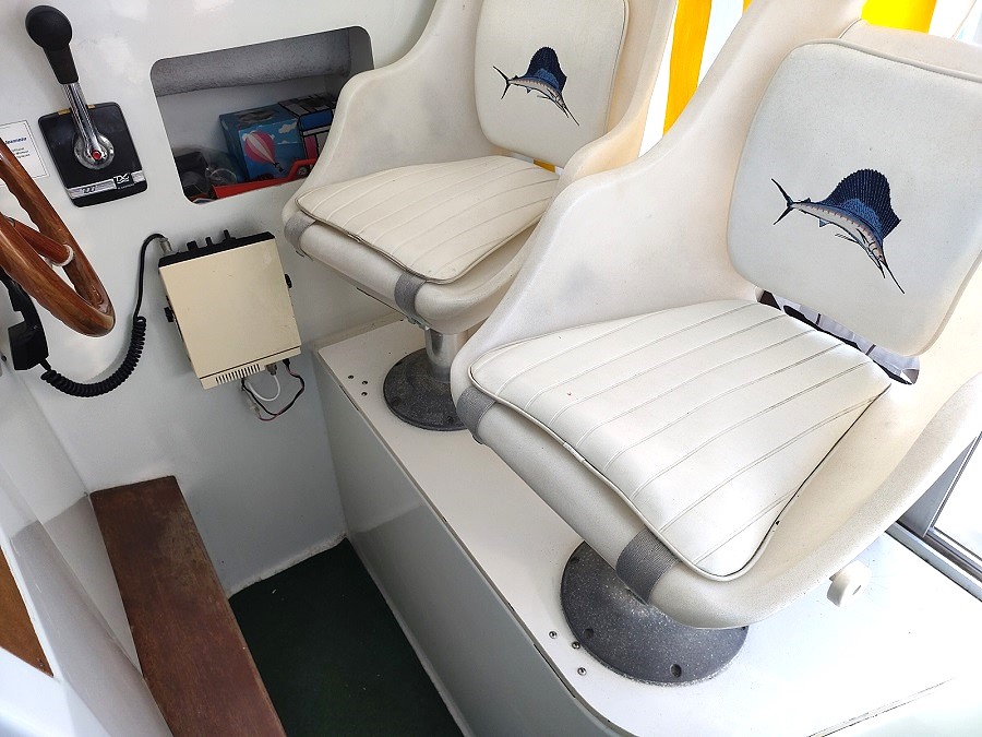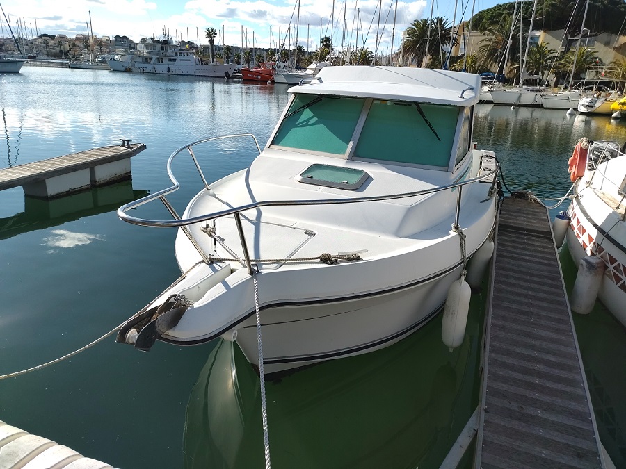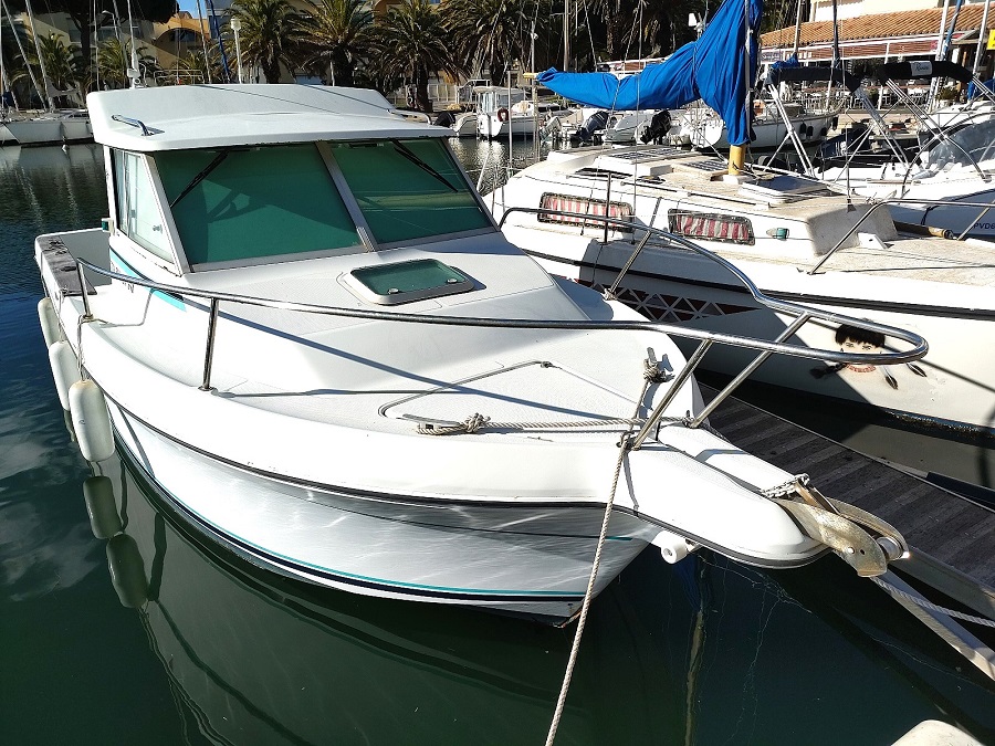 Version : Pêche Promenade – Timonerie intérieur – 1 Cabine avant double  = 2 couchages possible – Kitchinette – wc