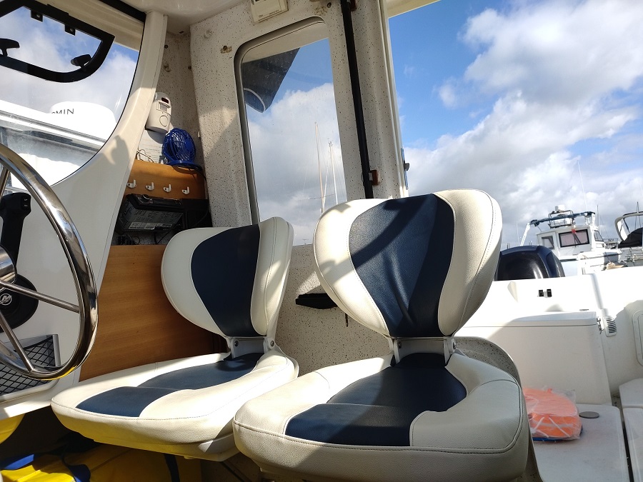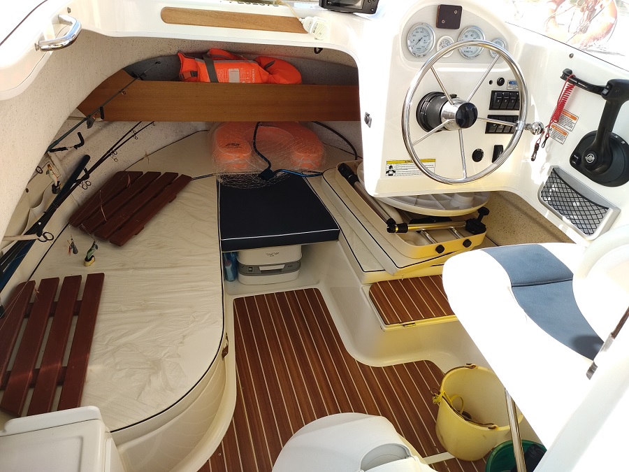 Version : 1 cabine avant double = 2 couchages – Timonerie intérieur – 2 Sièges de conduite –