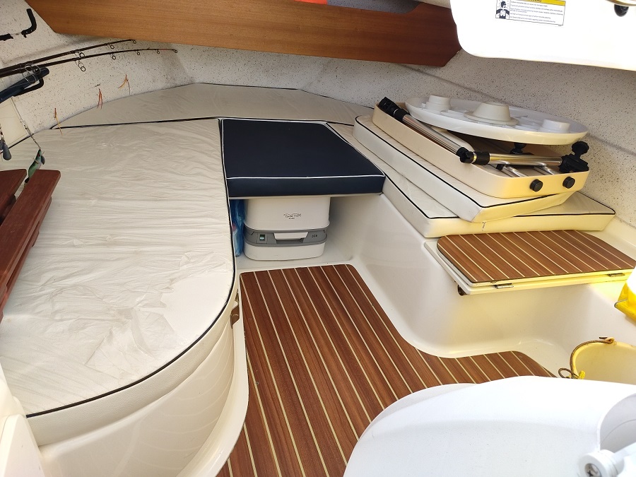 Vie à bord : WC : chimique Douche de pont : oui Réservoir eau souple : 100l. (Environ) Essuie-glace : 2023