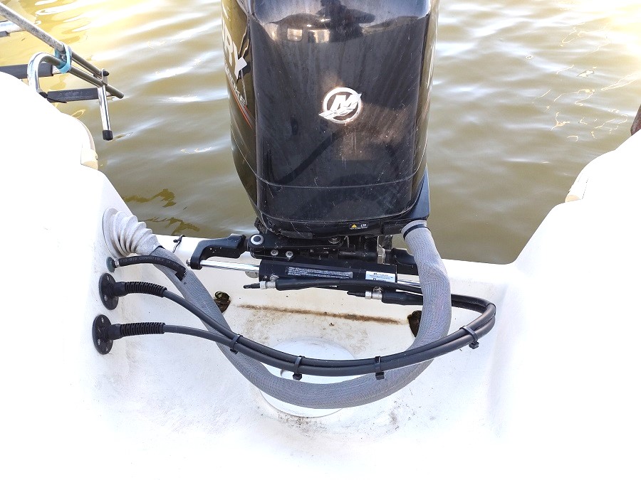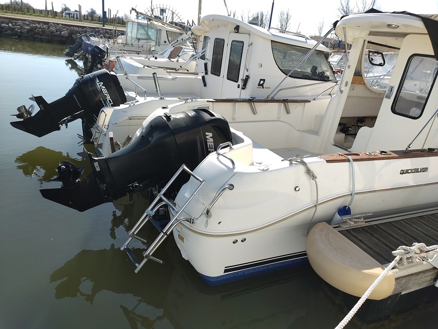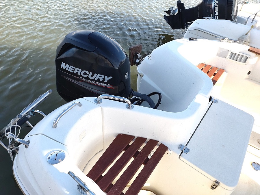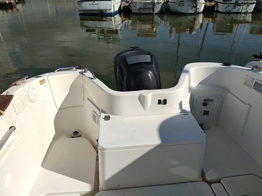 Moteur : MERCURY 1 x 115 cv HB – Essence Type moteur : NC (Révision 02/2025) Nombre d’heures : Environ 174 H. (Bloc trim + Direction de février 2025 ) Transmission : Hors-bord Type d’hélice : Tripale ( 02/2025) Réservoir Carburant : 1 x 130 L. plastique