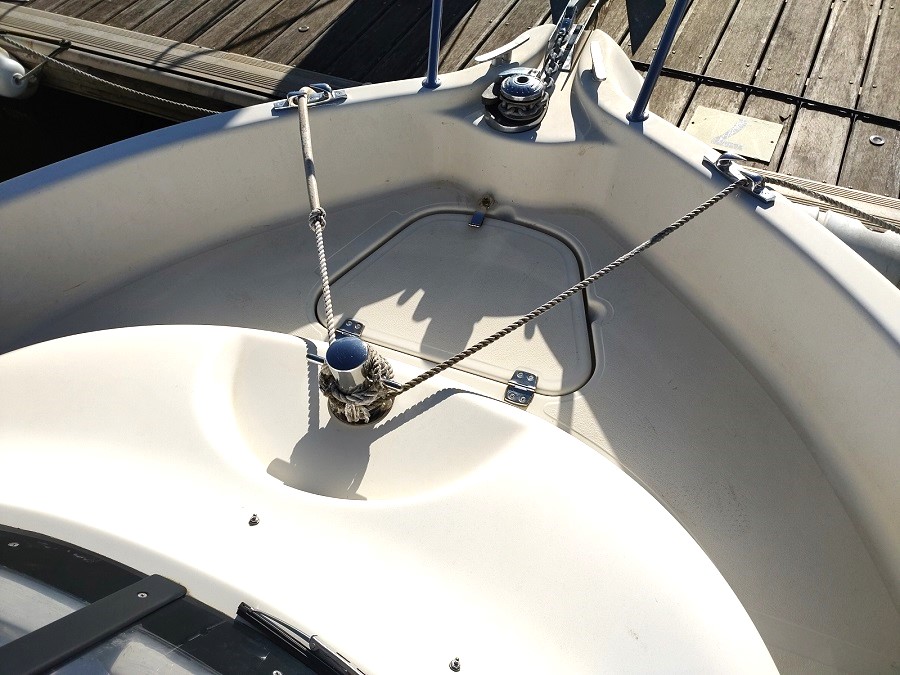 Divers : Echelle de bain : oui Guindeau électrique : oui Mouillage : 1 x 6 kg + 40 m de chaîne environ Table de cockpit : oui Coffres de cockpit : oui Bancs de Cockpit teck : x 2 vivier : oui Echelle de bains : oui support moteur HB : oui Portes-cannes : x 4
