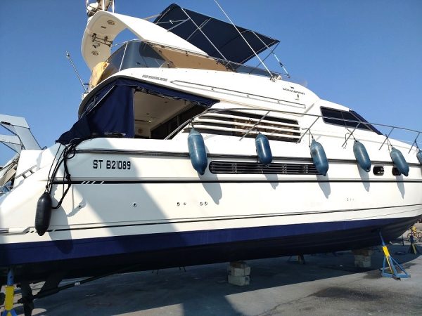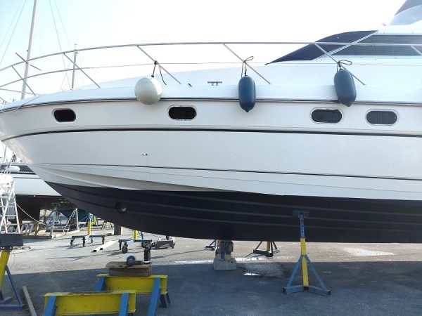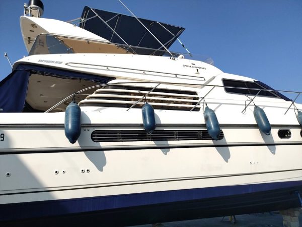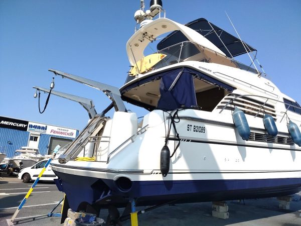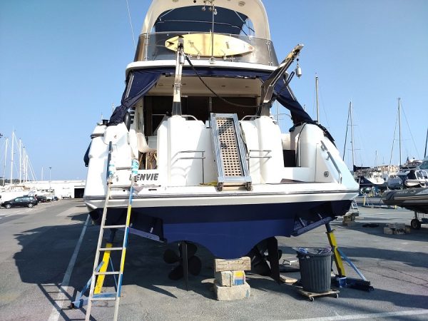 Divers : Table de cockpit : oui Echelle de bain : oui Plateforme arrière : oui Bimini sur Fly : oui Taud de fly : 2023 Banquettes sur Fly : oui Housse de console de fly : oui Guindeau Electrique : oui Mouillages : 1 x 15 kg. et 70 m. chaîne Passerelle Electrique : oui Bossoirs : x 2 Annexe : oui Moteur hors-bord : oui